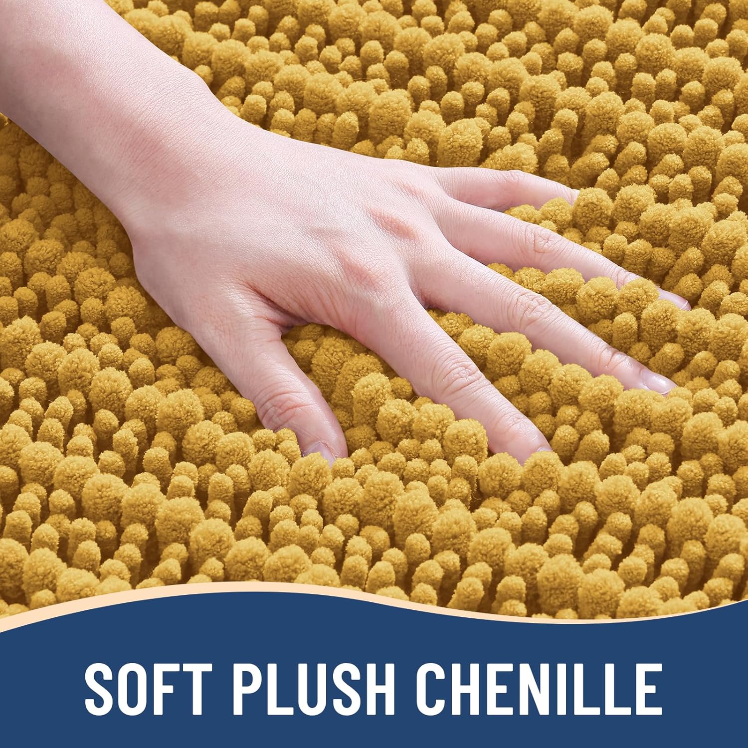 Arotive Luxury Chenille Bathroom Rug Mat, Extra Soft Thick Absorbent Shaggy Bath Rugs, Non-Slip Machine Wash Dry, Plush Bath Mats for Bathroom, Shower and Tub, 24x16, Golden Yellow