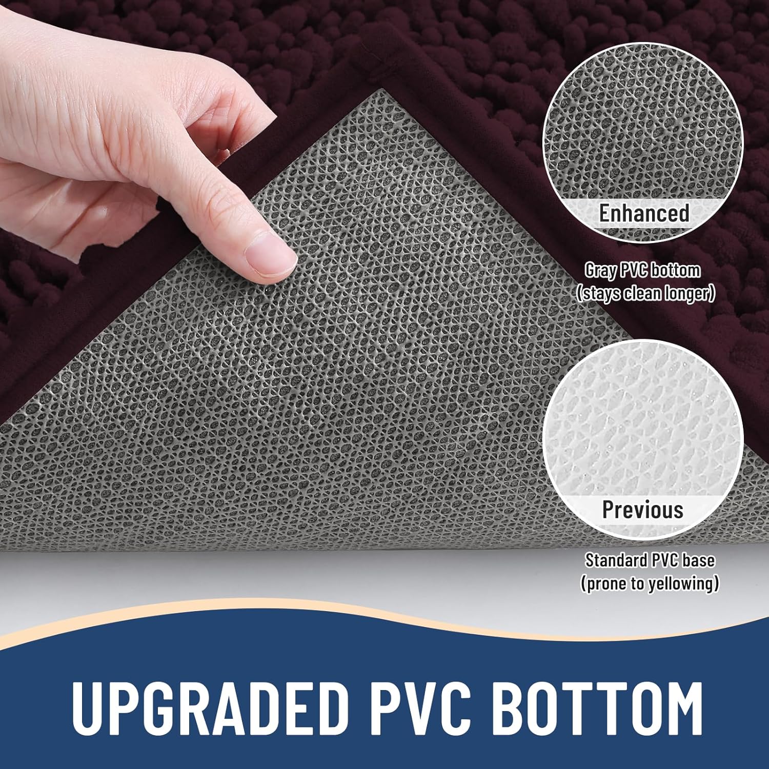 Arotive Luxury Chenille Bathroom Rug Mat, Extra Soft Thick Absorbent Shaggy Bath Rugs, Non-Slip Machine Wash Dry, Plush Bath Mats for Bathroom, Shower and Tub, 30x20, Black Cherry
