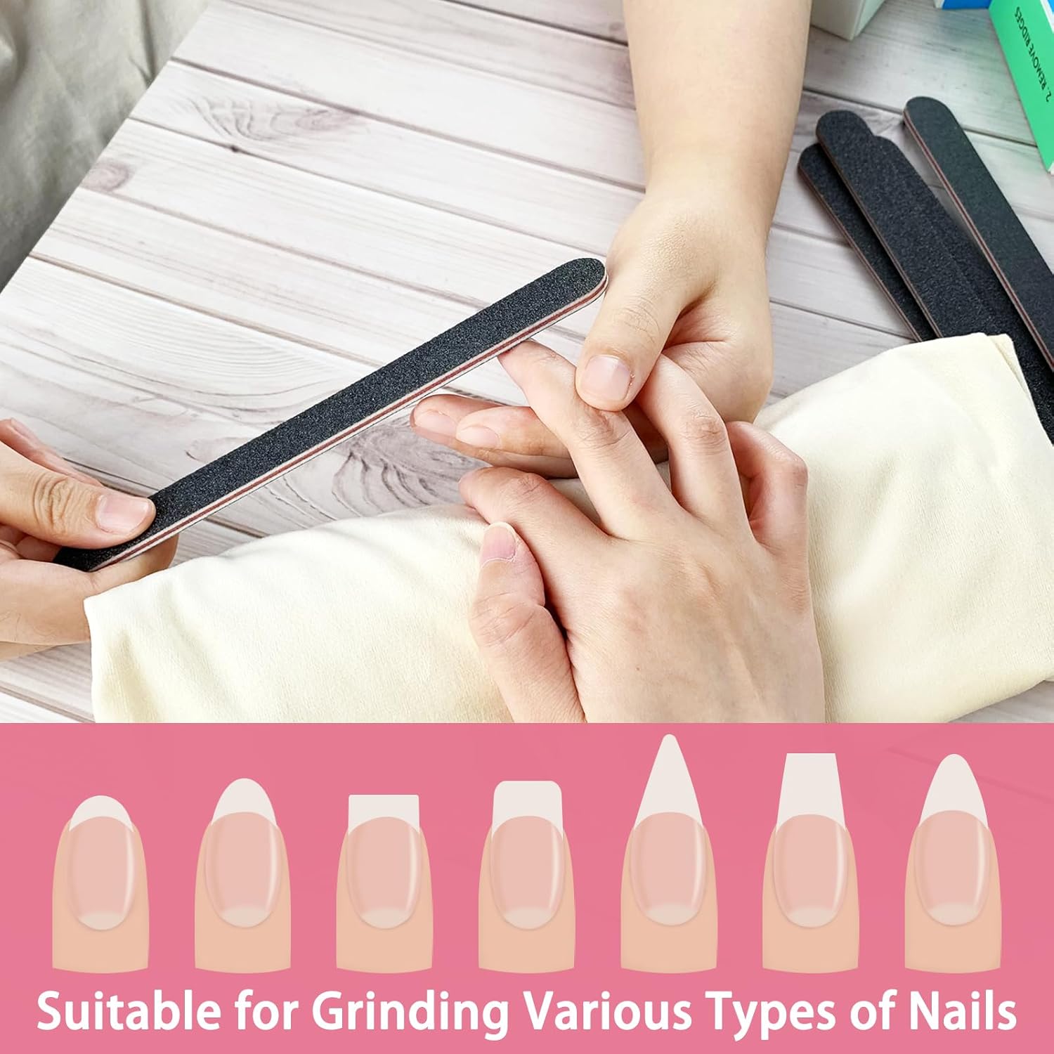 - Dual-Grit Nail Files: The black nail files feature 180-grit coarse sand for removing gel nail polish and caring for toenails, and 100-grit fine sand for trimming nail edges and shaping nails.