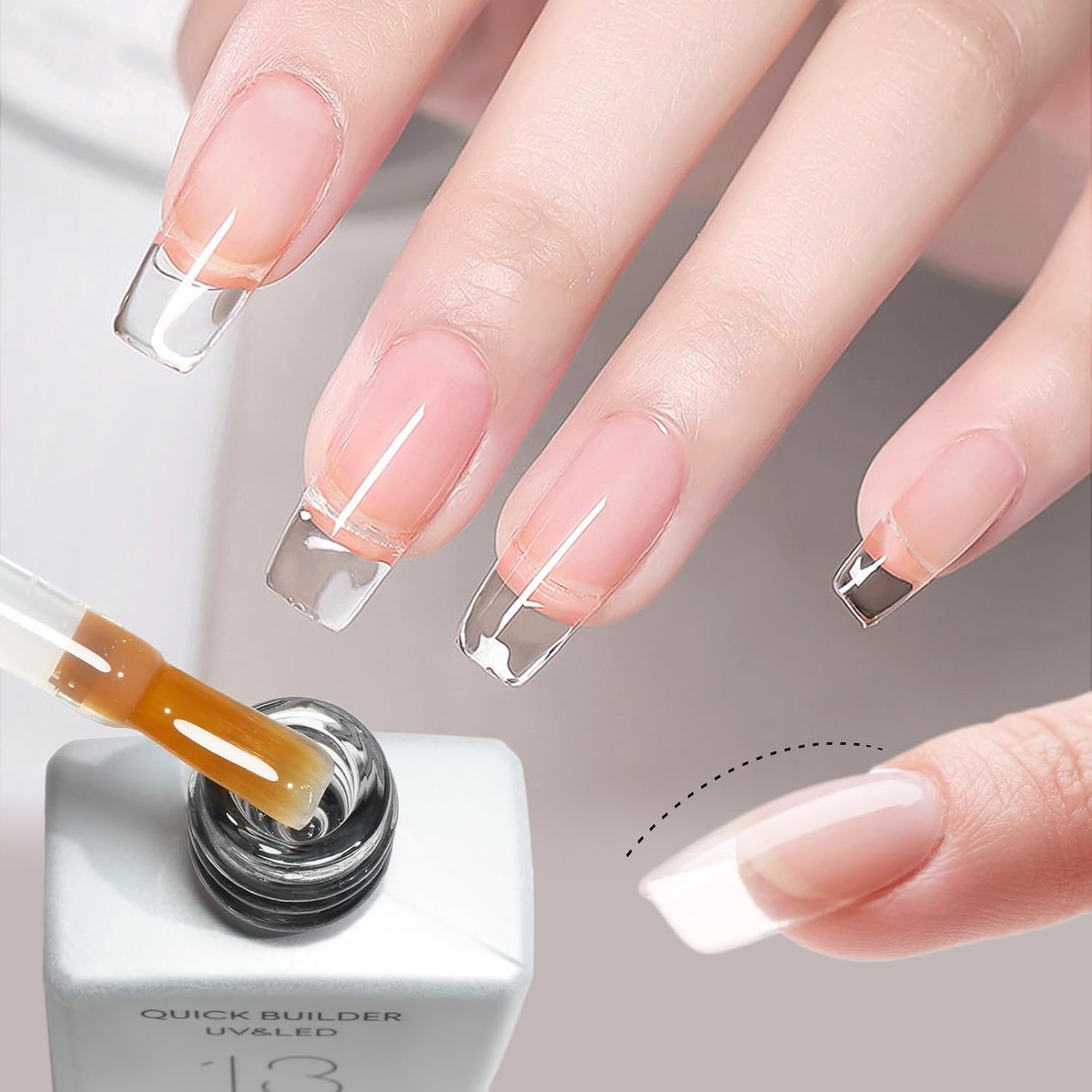 - Clear & Nude Pink Jelly Shades: This 6 pcs builder nail gel set features elegant nude pink, clear, milky white, and jelly tones that complement every skin tone — perfect for creating classic French nails or soft, natural looks.
