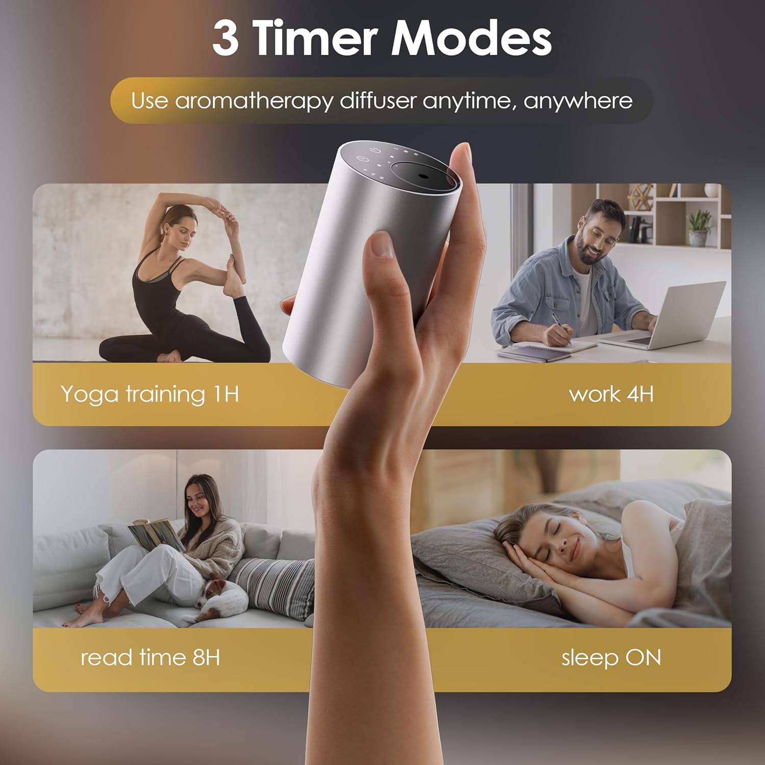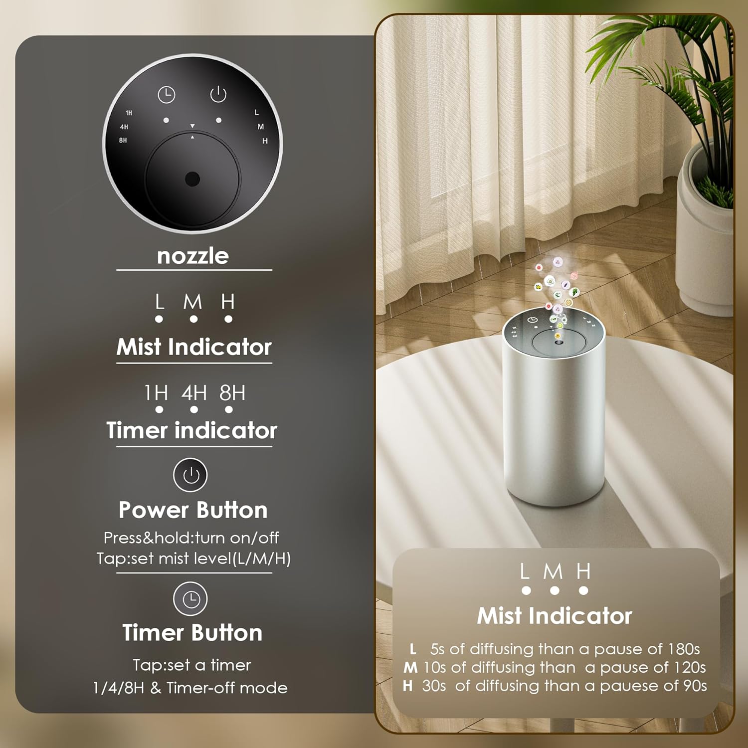 - Essential Oil Diffuser with 3 Spray Modes, Battery Operated, LED Timing Display,Aromatherapy Diffuser, 1/4/8-Hour Timer, 10ml Oil Bottle, and 3 Mist Settings for Home, Car, and Office