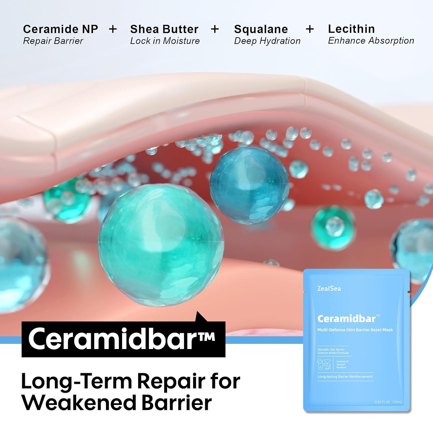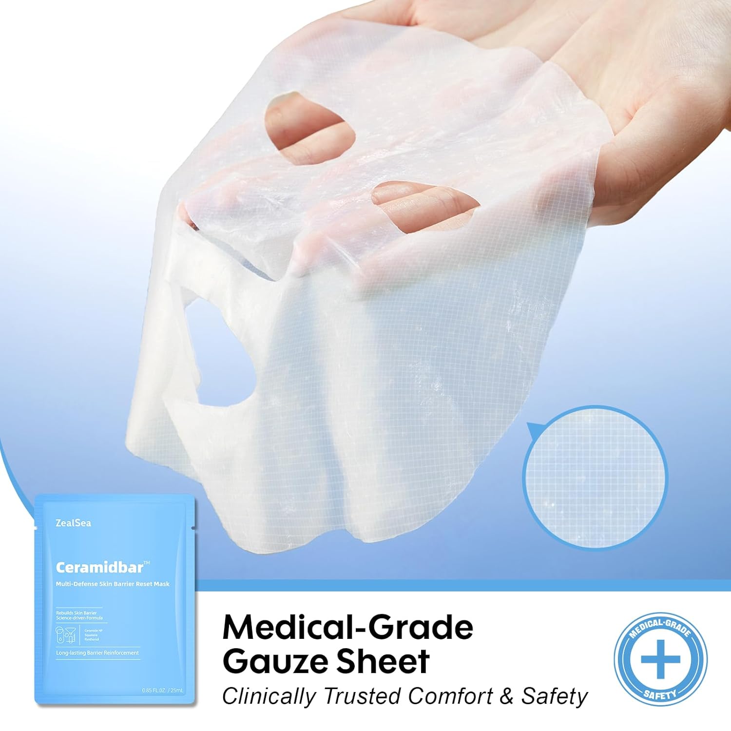 Ceramidbar Face Masks Skincare Set, ZealSea Derm Solution Sheet Mask for Multi-Trigger Sensitivity, Soothing & Calming, Strengthen & Restore Skin, Facial Mask with Cica & Ceramide, 10 Pack