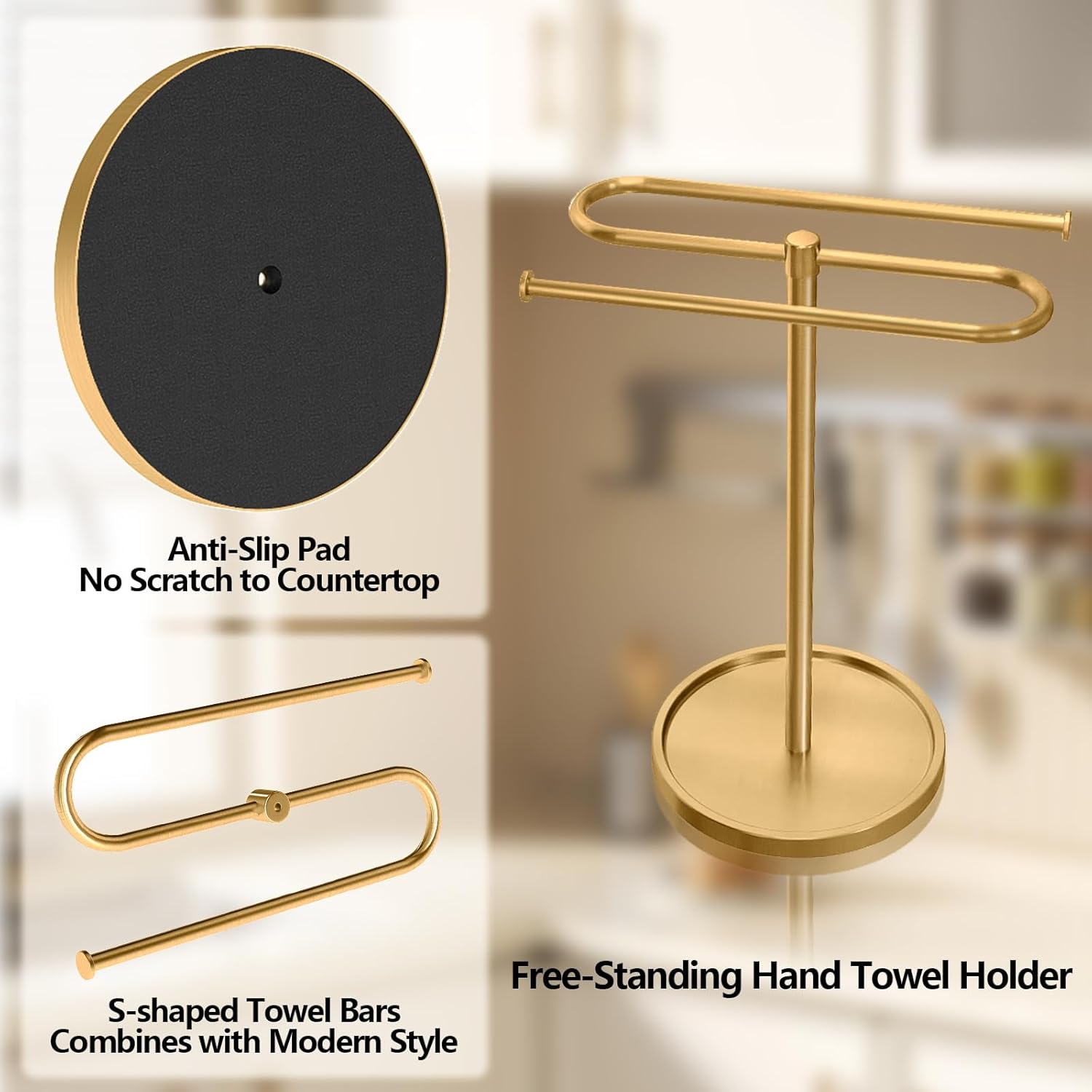 - Non-Slip Pad Design: The towel rack all base comes with a non-slip EVA round pad, making the hand towel holder more stable, and not scratch your countertop and furniture