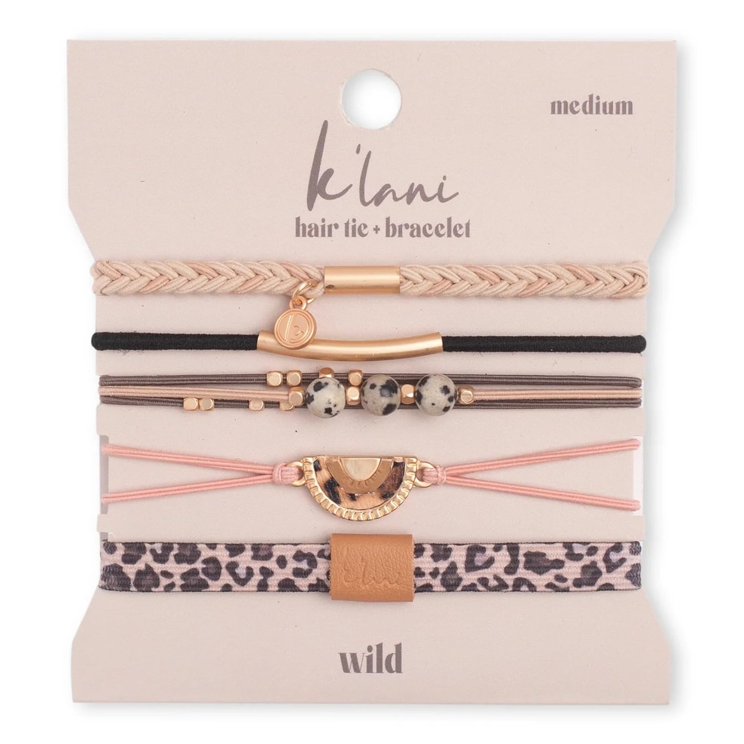 K'lani Wild Bracelets for Women – Elastic Bracelets and Boho Hair Ties – Cute Hair Ties for Women and Hair Tie Accessories – Stylish Bracelets Boho Style for Hair and Wrist – Set of 5 (Large)