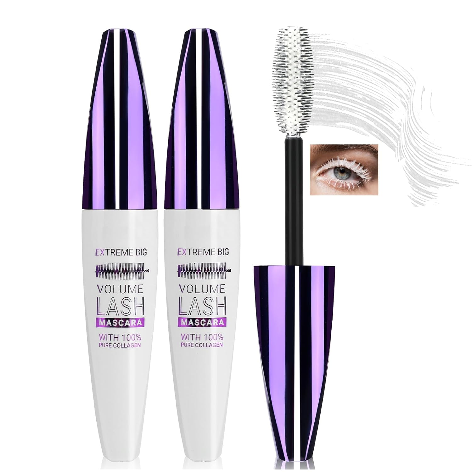 2PCS White Mascara for Eyelashes, 5D Colored Mascara 【Waterproof】【Natural Curling】【Lengthening Curling rimel de pestañas Volume】for Women Eye Makeup Cosplay & Parties