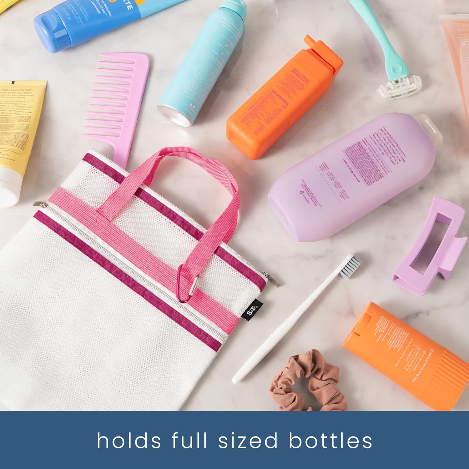 - Includes 1 mesh shower caddy measuring 10" x 10" to help carry and organize your shampoo and conditioner set, razor, hair brush, and other bathroom essentials