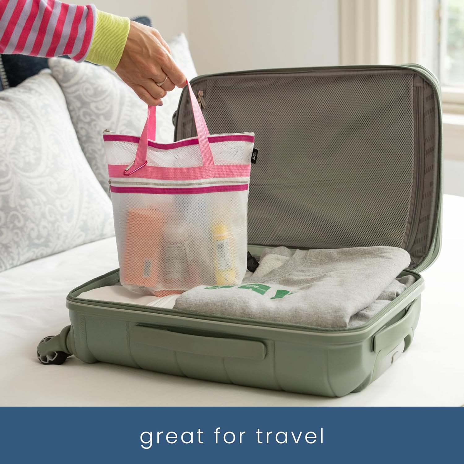 - The versatile shower bag will become part of your RV and camping essentials for easier packing, cruise essentials to stay organized, as a beach bag or by the swimming pool for small pool toys