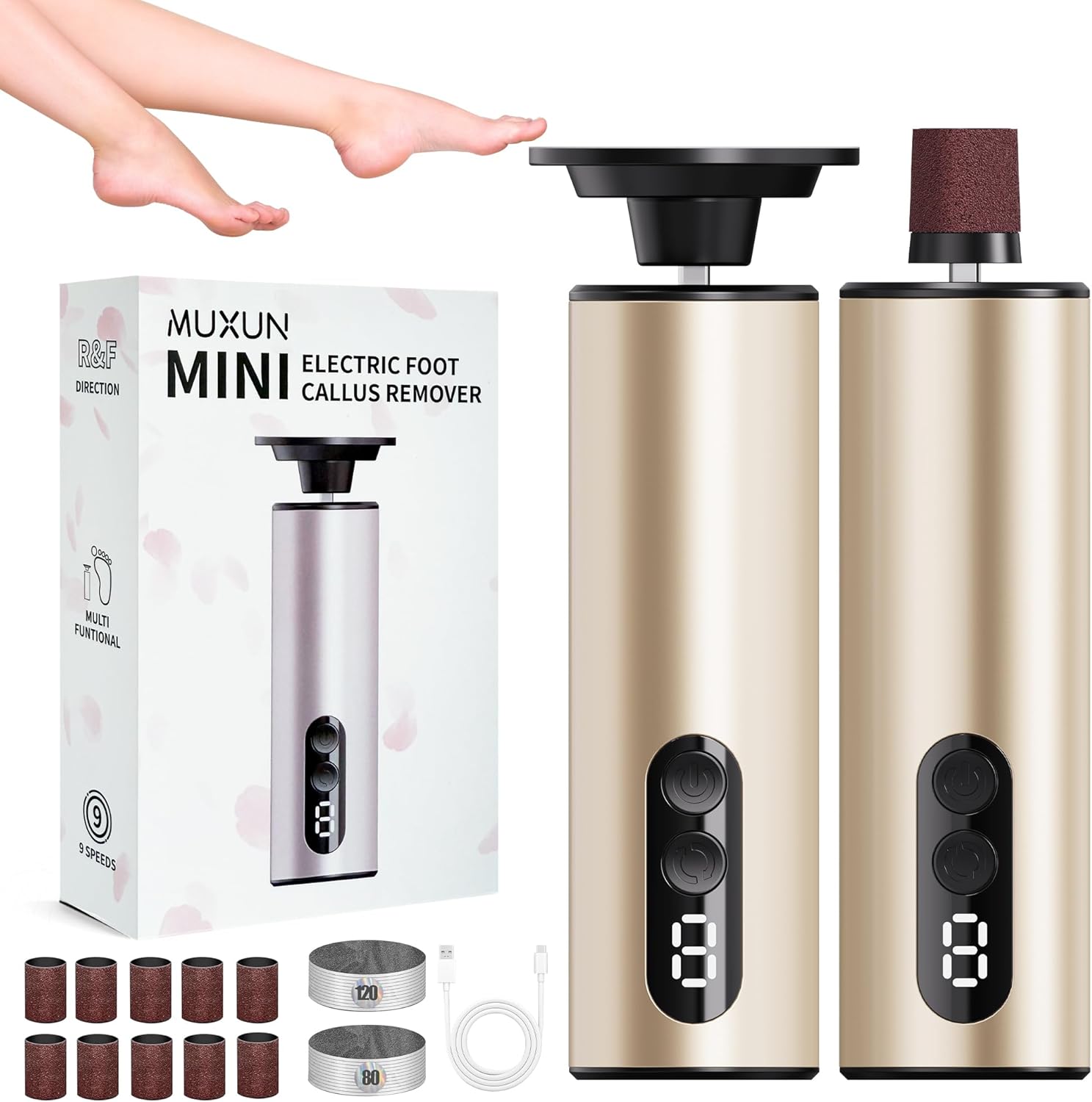 Electric Foot Callus Remover,2 in1 Rechargeable Callus Remover for Feet,9-Speed Cordless Electric Foot File Nail Grinder,Foot Scrubber Pedicure Tools for Dead Skin Dry Cracked Feet (Gold MINI)