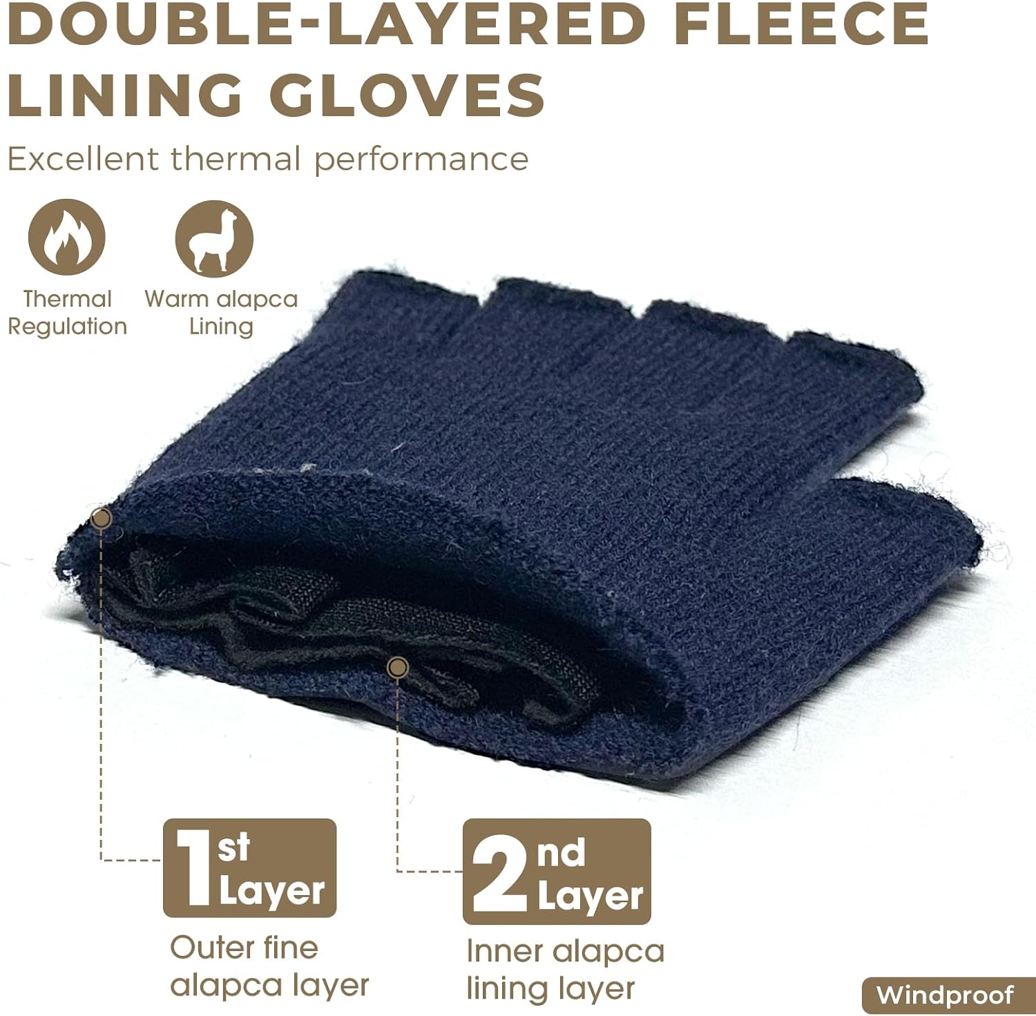 - Ultra-Soft & Breathable Alpaca Wool with Fleece Lining:Made from premium alpaca wool with a cozy fleece lined interior, these fingerless gloves are exceptionally soft and skin-friendly, ensuring warmth without irritation. Ideal for everyday use in cold weather, whether you're working indoors or enjoying outdoor activities like hiking.