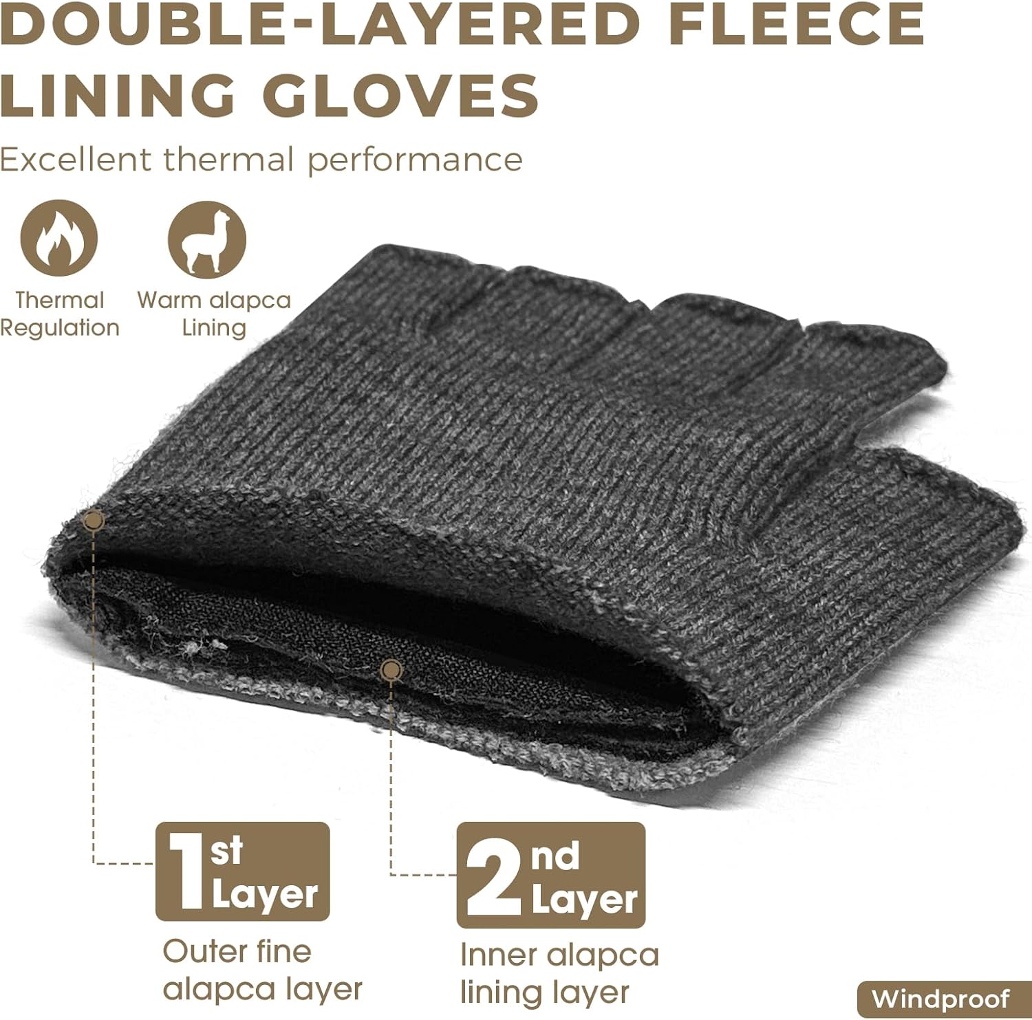 Rahhint Alpaca Wool Fingerless Gloves for Men Women Double-Layer Fleece Lined Winter Liner Warm Windproof Knitted