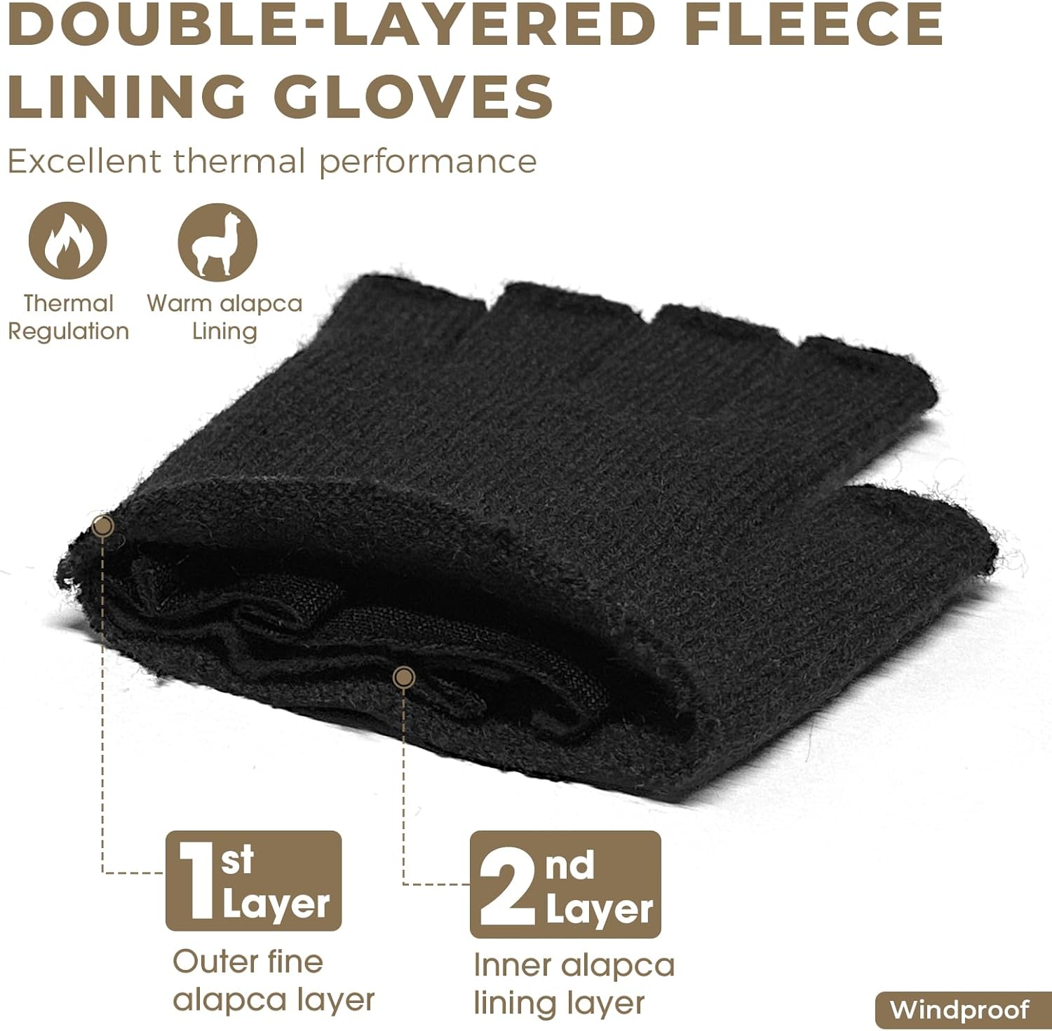 Rahhint Alpaca Wool Fingerless Gloves for Men Women Double-Layer Fleece Lined Winter Liner Warm Windproof Knitted