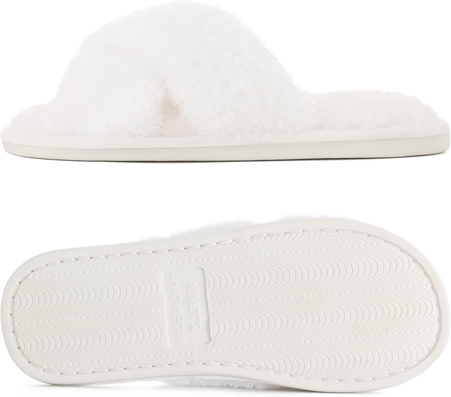 Evshine Women's Fuzzy Slippers Cross Band Memory Foam House Slippers Open Toe
