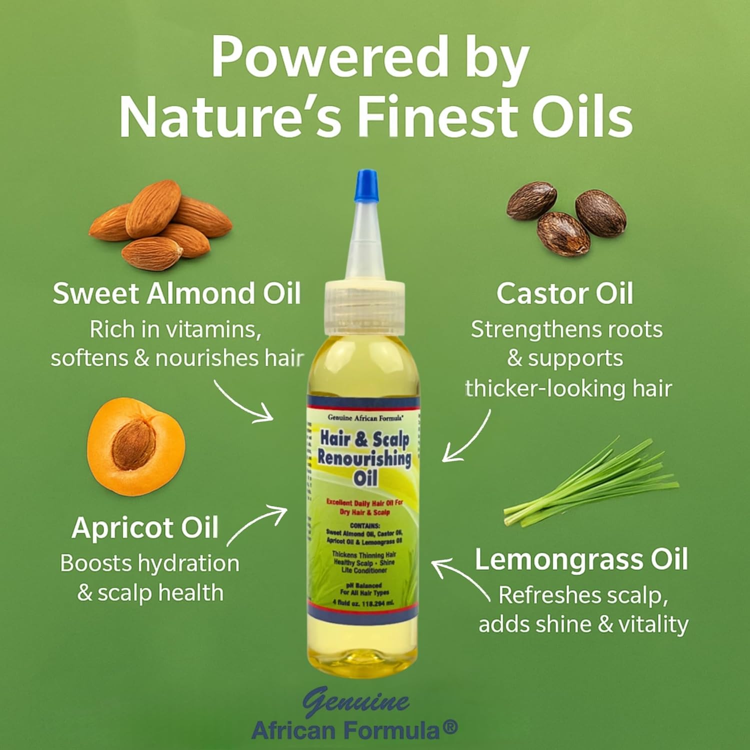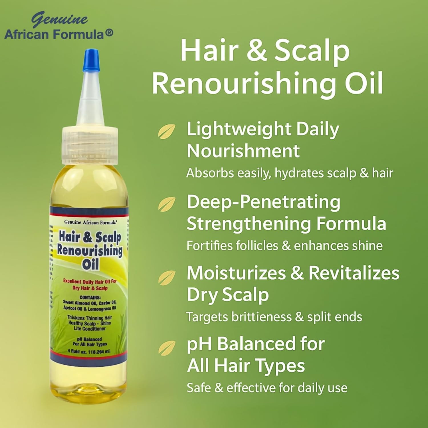 Hair & Scalp Renourishing Oil 4oz (118.29ml) | Lightweight Natural Treatment with Essential Oils, Shea Butter & Vitamin E | Strengthens, Nourishes & Restores Dry, Brittle Hair & Split Ends