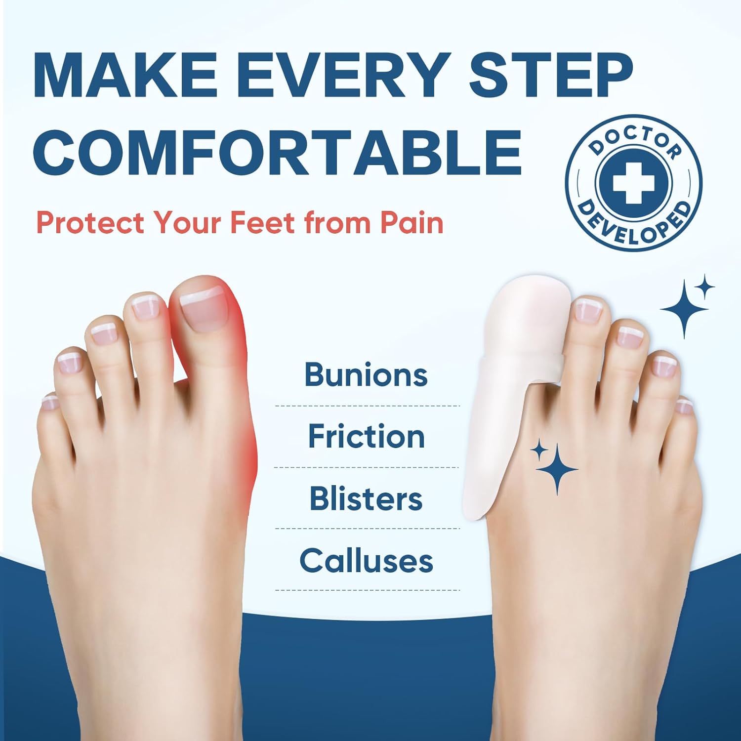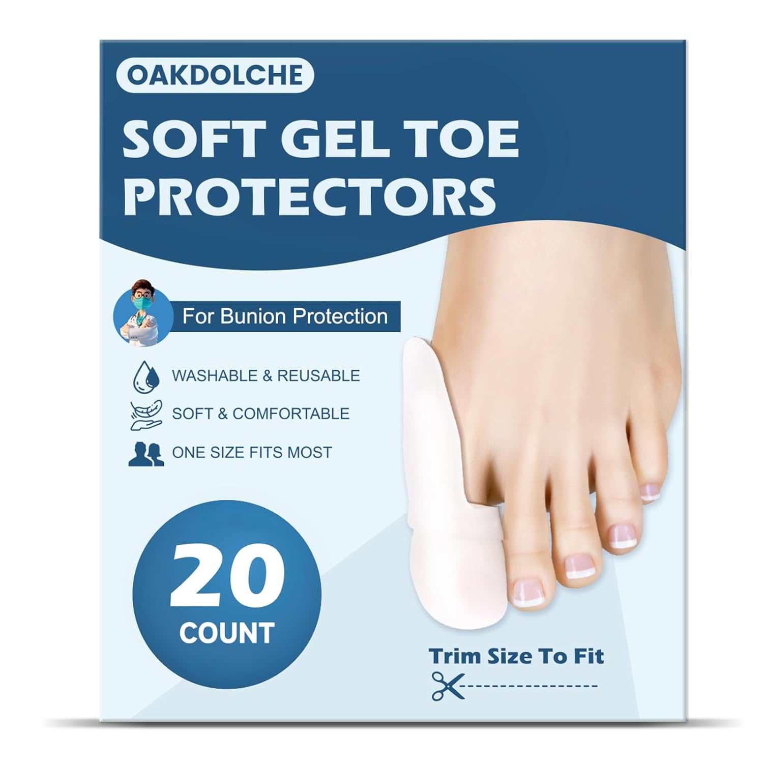 20 Count Bunion Pads & Toe Protector Set, 10P Toe + 10P Bunion Protectors, Soft Gel Toe Cap for Foot Pain Relief, Friction & Pressure Protection