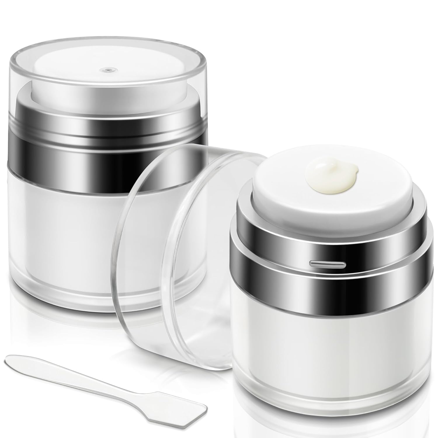 2 Pcs Airless Pump Jar, Refillable Cream Jar Vacuum Bottle Travel Size Empty Container for Cream and Lotion (2 x 0.5oz)