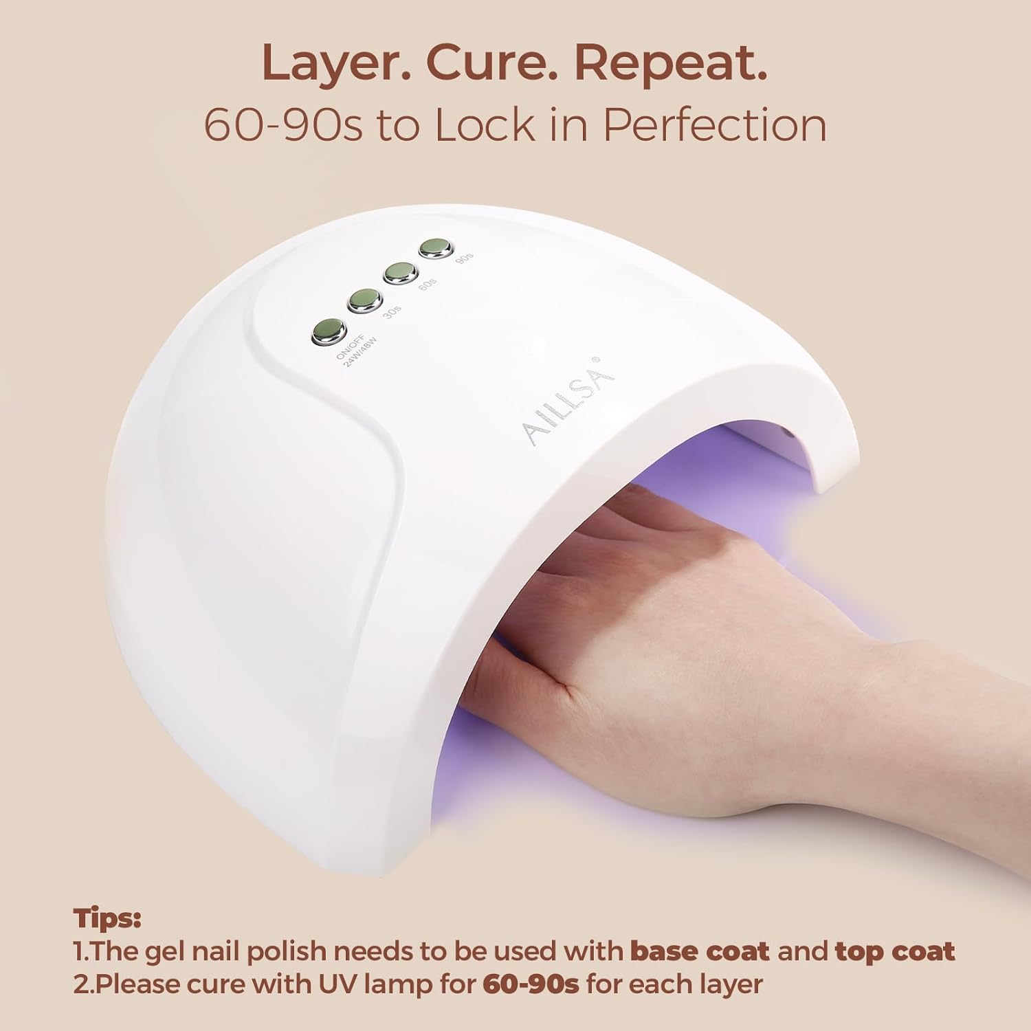 - Natural & Easy to Apply - Formulated with natural resin and rigorously SGS certified for safety. AILLSA gel polish glides on smoothly with high color saturation in one coat, delivering a streak-free, high-gloss finish with no brush marks. Achieve a professional salon-quality manicure at home in just 10 minutes, at a fraction of the cost.