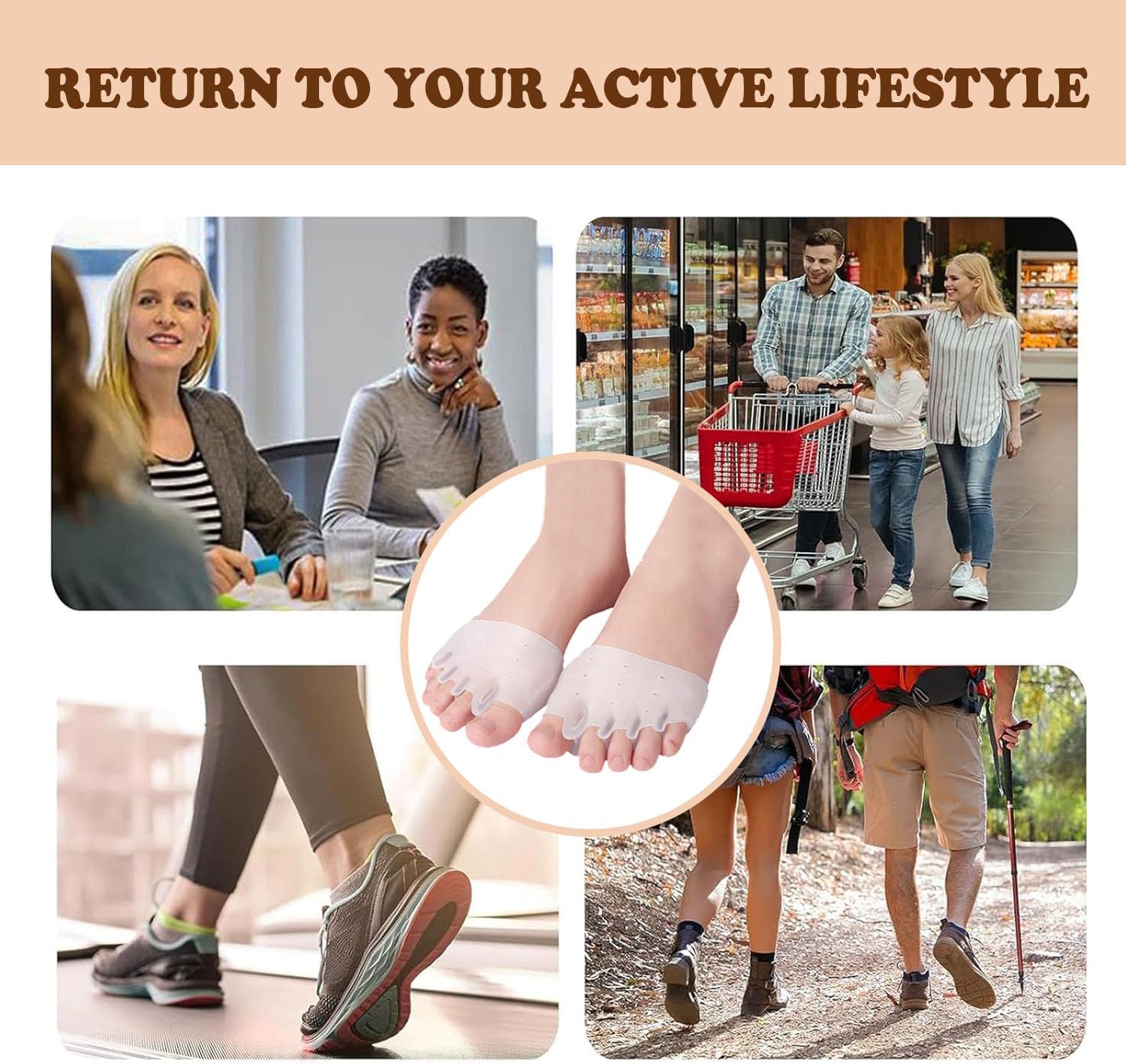 - 【For Everyone & Every Scenario】These metatarsal gel pads are flexible and fit most men’s and women’s foot shapes. Whether you have overlapping toes, need extra forefoot support, or enjoy activities like yoga, our toe spacers offer versatile comfort. They can be worn all day, letting you enjoy work, shopping, running, traveling, dancing, or other activities with ease.