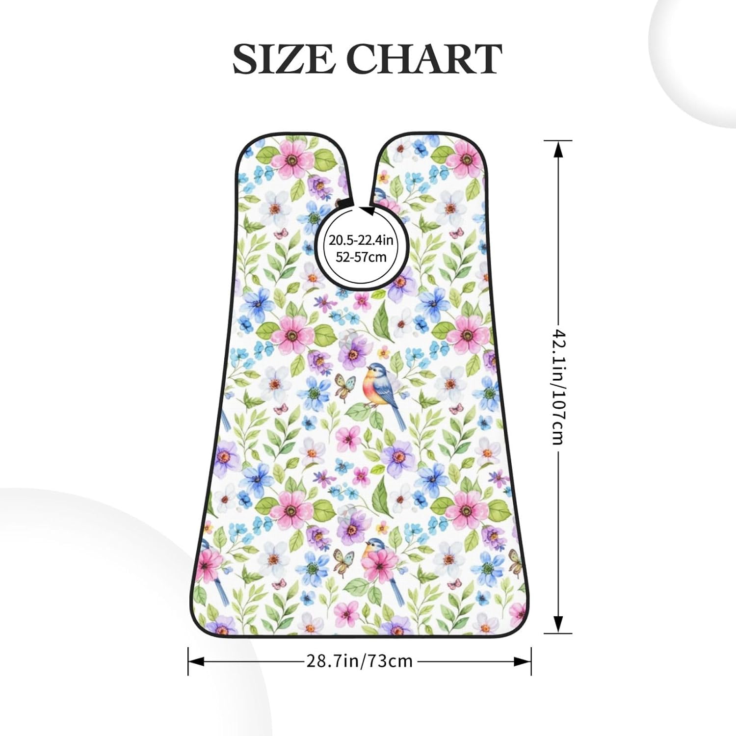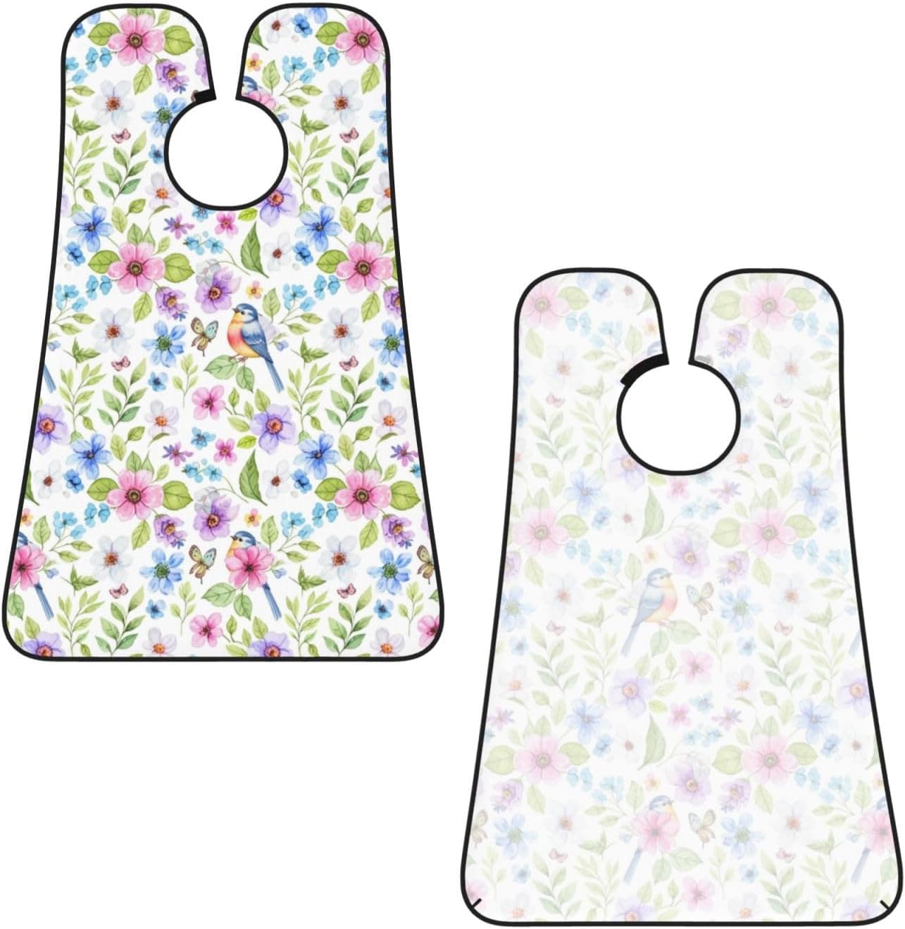 Non-Stick Beard Bib for Shaving, Watercolor Floral Vintage Flowers and Birds Butterflies Peony Flower Shave Bib, Waterproof Hair Catcher with Suction Cups, Grooming Apron Men Husband