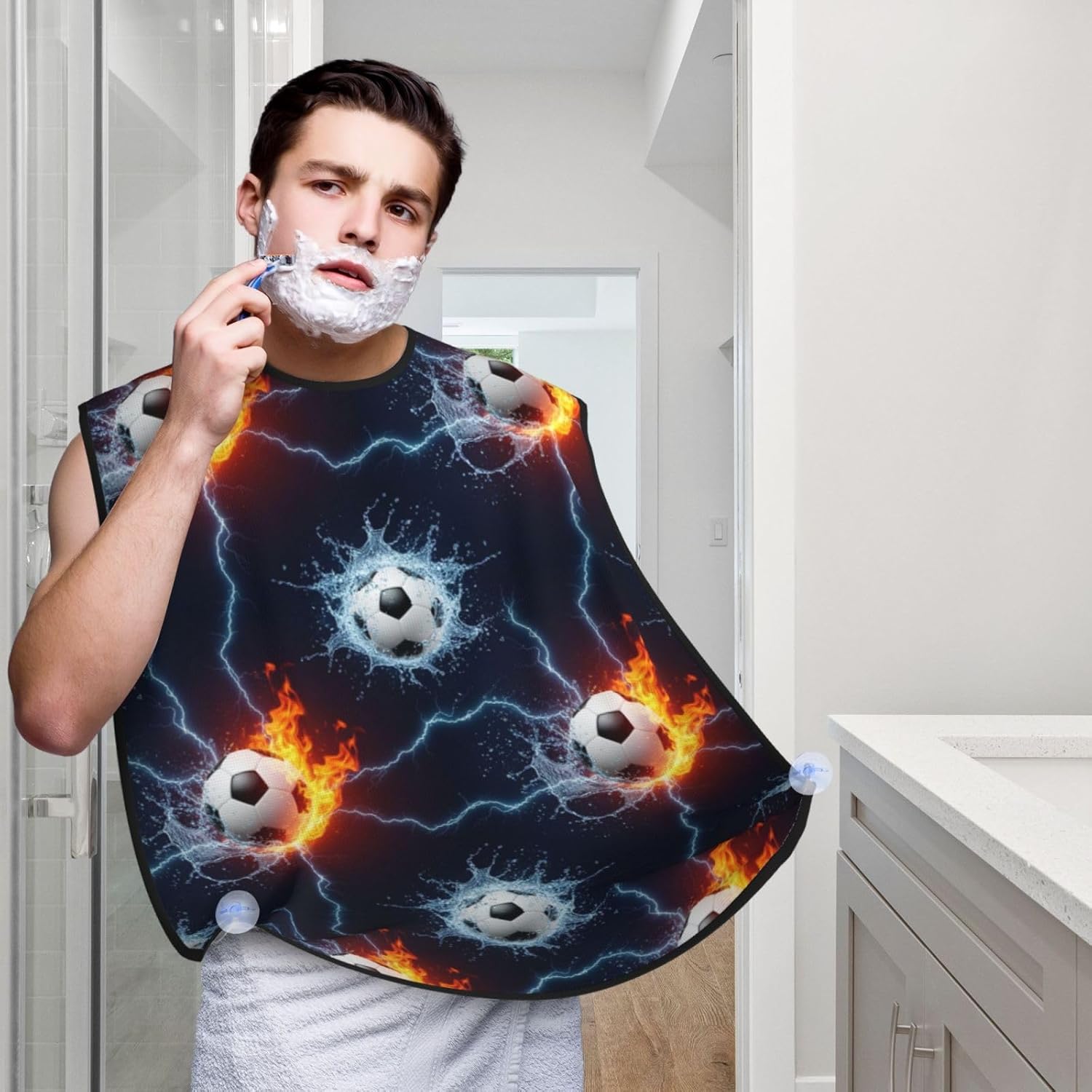 Adjustable Beard Catcher Apron, Water and Fire Soccer Ball Shave Bib, Non-Stick Waterproof Grooming Bib, Shaving Essential for Men Dad Christmas