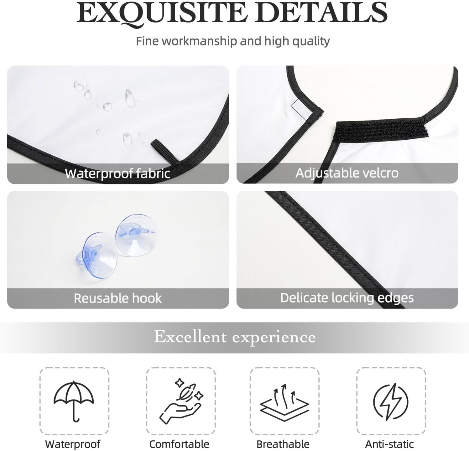- Ideal Size & Secure Fit for Comfort: Generously sized at 42.1 in x 28.7 in with an adjustable neck (20.5-22.4 in) bib comfortably fits all body types. Includes 3 strong suction cups for stable mirror attachment and a PVC storage bag (including 1 carabiner) for compact organization