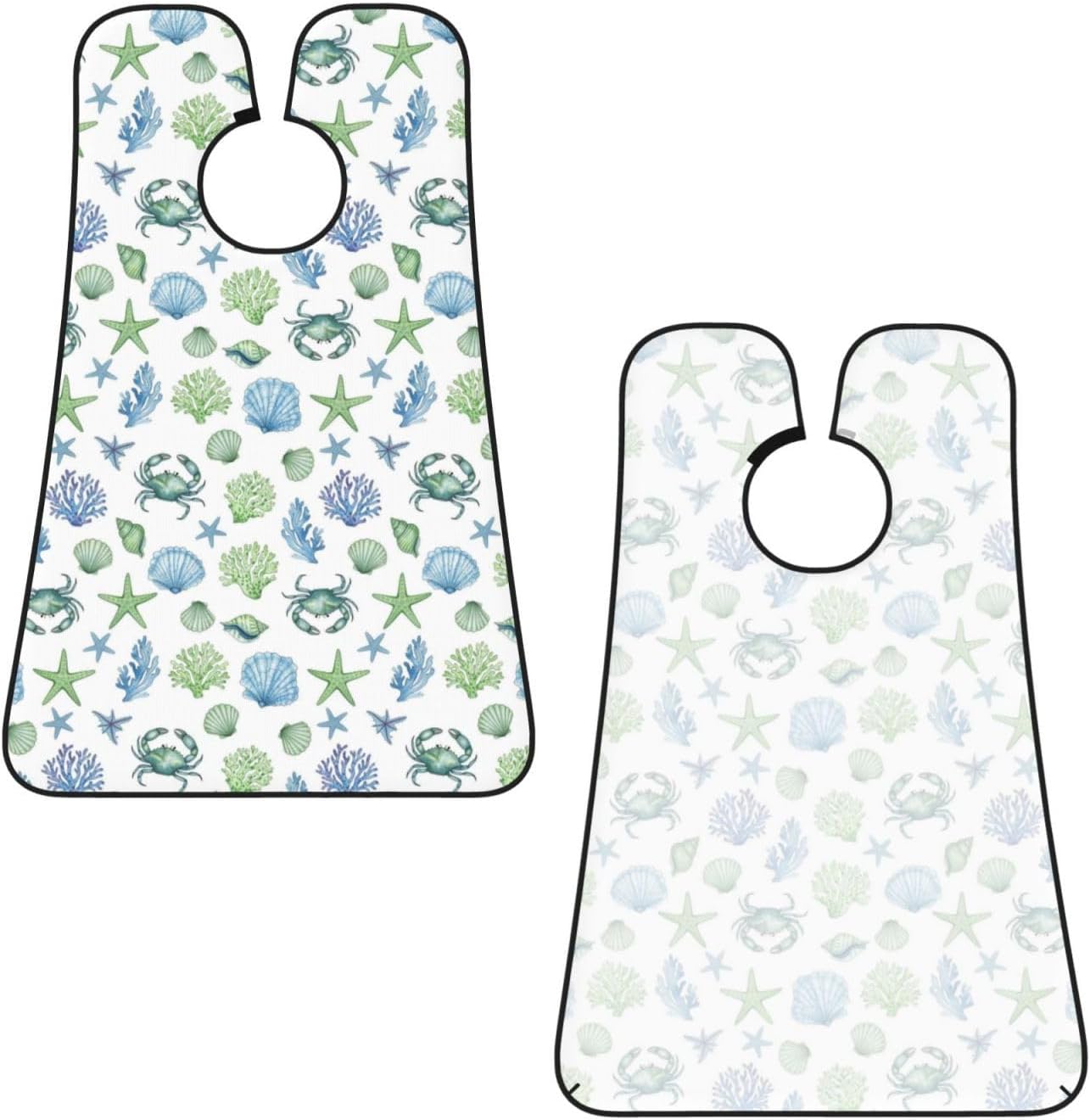 Beard Shaving Cape with Suction Cups, Under Sea Ocean Starfish Shell Coral Crab Watercolor Shave Bib, Non-Stick Waterproof Hair Catcher, Grooming Bib for Men Husband