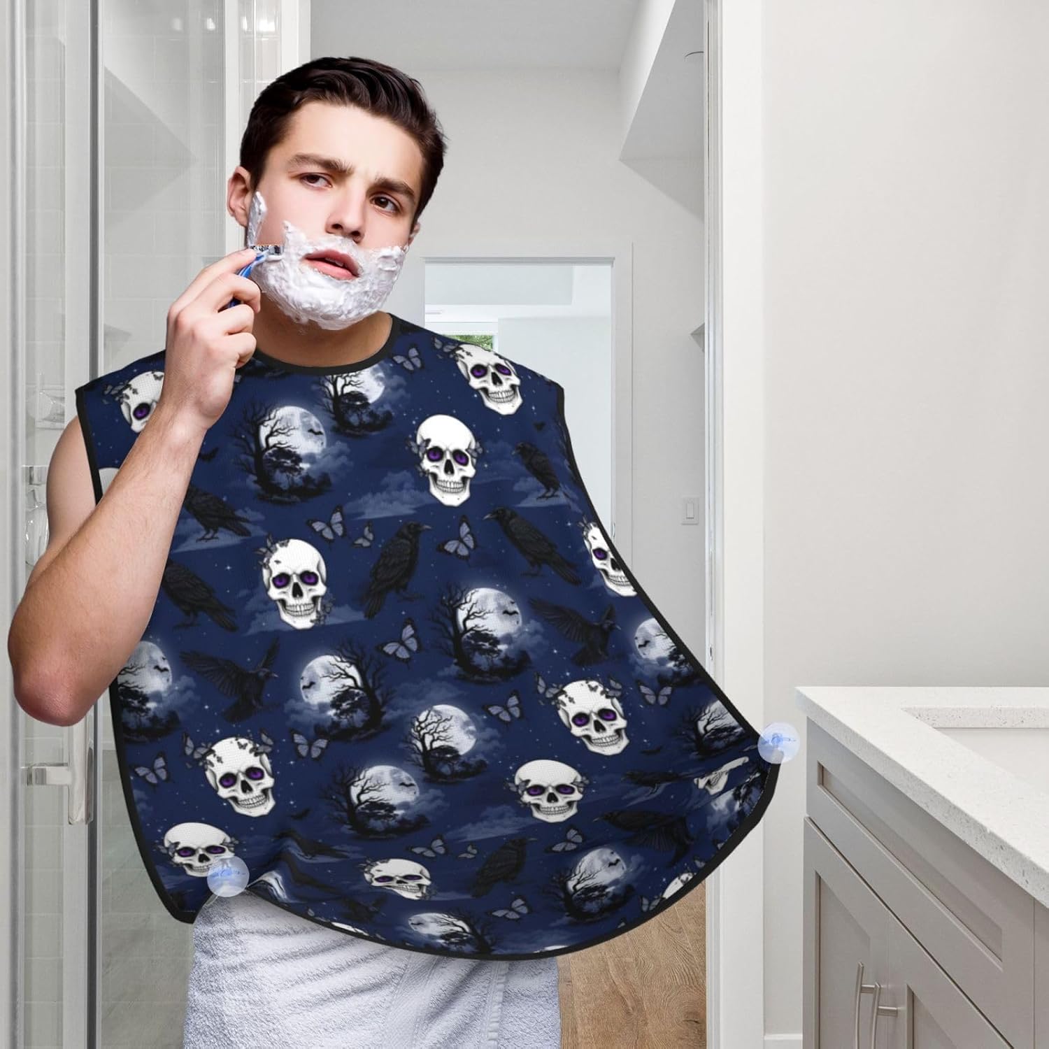 Ultimate Shaving Bib, Beard Trimming Apron with Hair Catcher, Halloween Full Moon Raven Goth Skulls