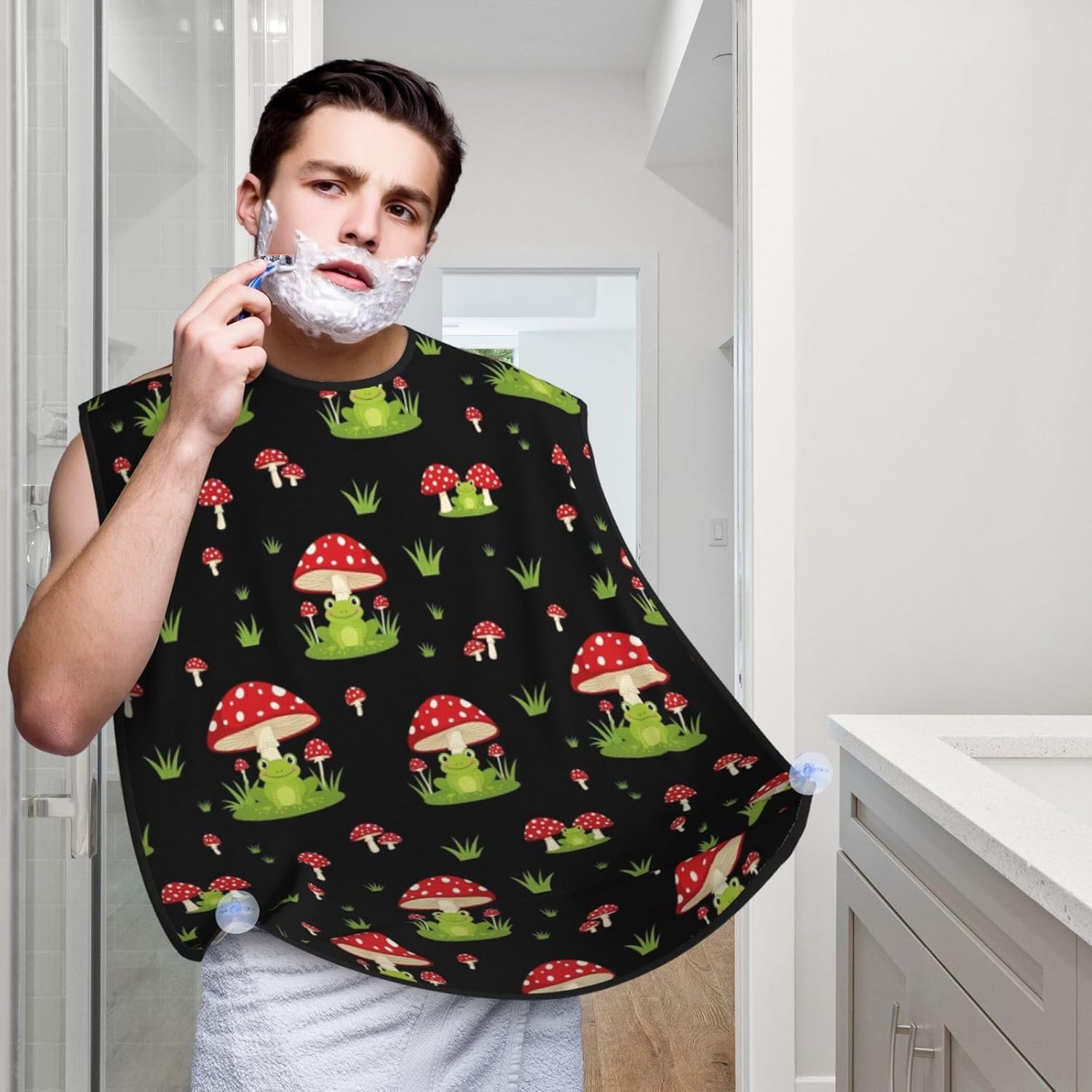 Beard Hair Catcher for Men, Waterproof Shaving Bib Apron Non-Stick, Trimming Tool for Dad Husband, Cute Frogs Cartoon Mushroom Hats Shave Bib