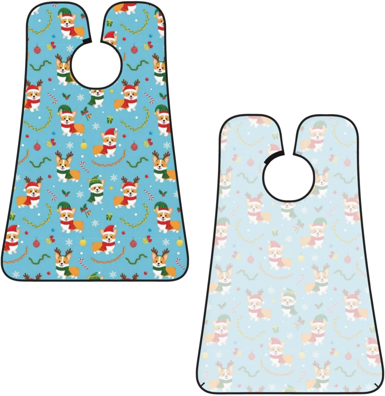 Beard Bib with 3 Suction Cups, Non-Stick Waterproof Hair Catcher Apron, Men's Shaving Essential for Grooming, Christmas Corgi Dog Blue Shave Bib