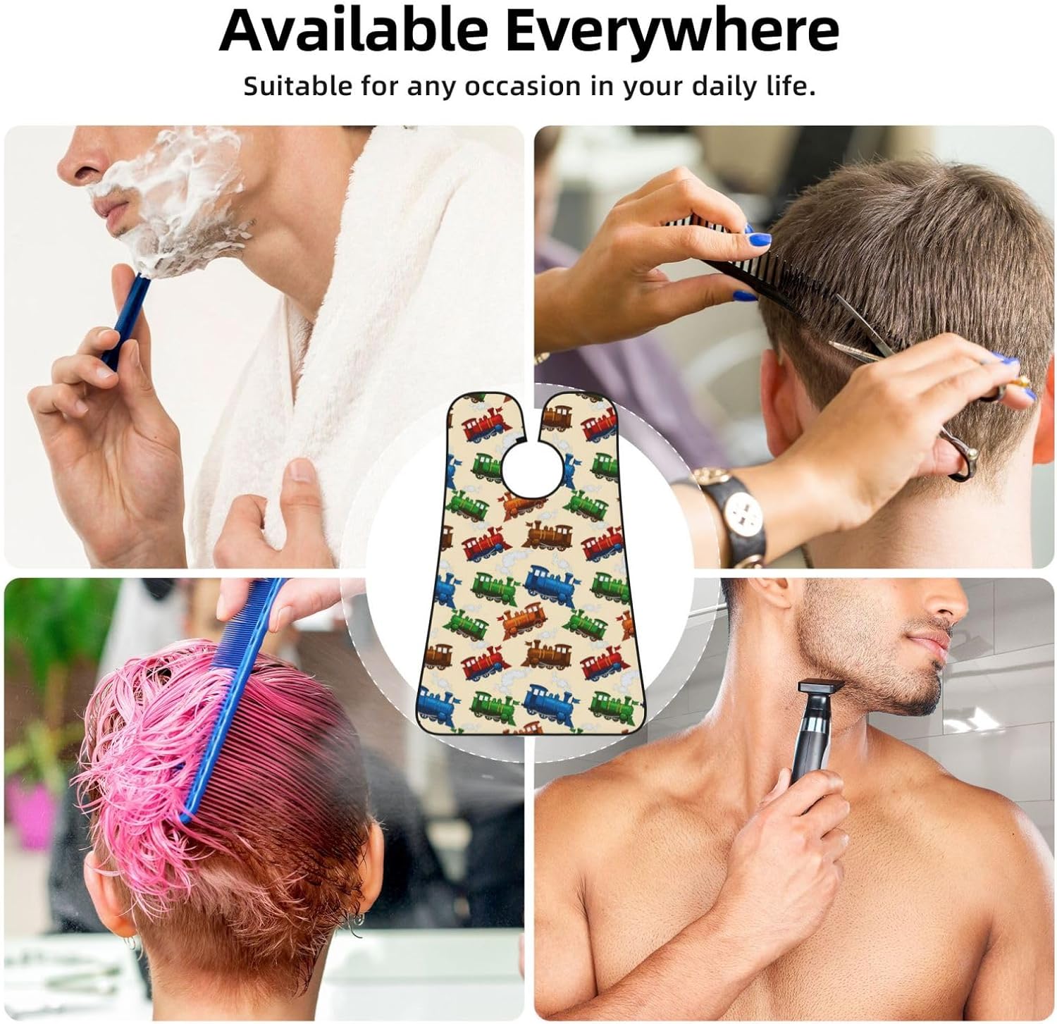 Beard Bib Apron for Men Shaving, Waterproof Non-Stick Hair Catcher with Suction Cups, Grooming Essential for Dad Husband, Cartoon Style Retro Steam Trains Shave Bib