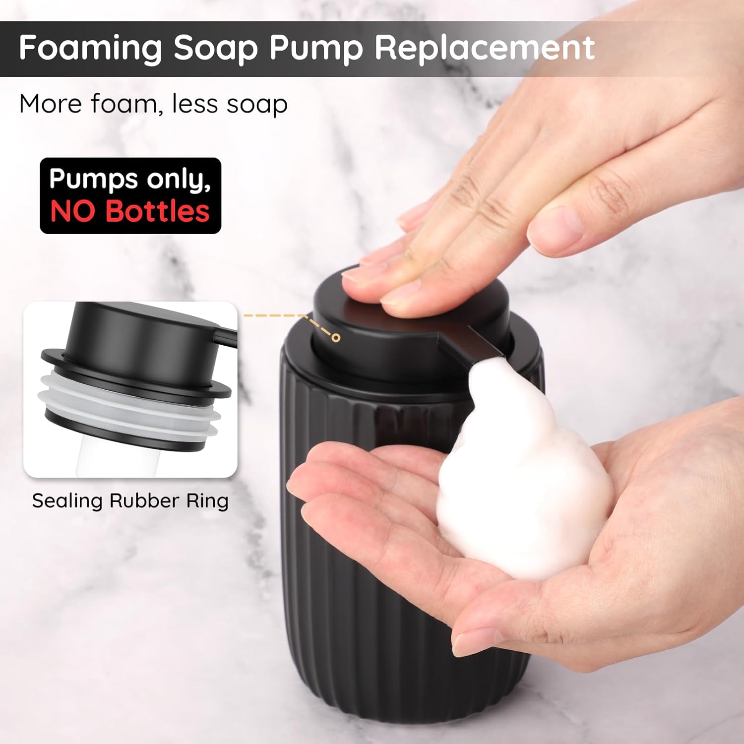 Segbeauty 2pcs Black Foaming Hand Soap Dispenser Pump Replacement, Foam Soap Dispenser Pump Head for Ceramic Dispensers Bottle Kitchen Sink, Pumps Replacement for Bathroom Shampoo Body Wash Container