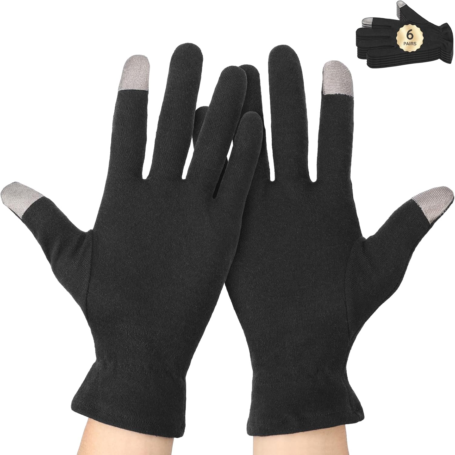 Segbeauty 12 Counts Touchscreen Gel Cotton Gloves Black with Elastic Band, 6 Pair Touch Screen Hand Moisturizing Cotton Gloves for Dry Hands Sleeping Overnignt, Reusable Hand Care Moisture Sleep Glove