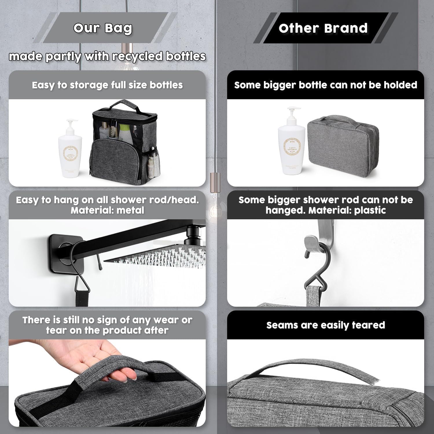 - Easy installation & Sturdy hooks: Equipped with durable metal hooks, it is quick to install and securely fastened. You can hang it as needed, shower hanging caddy saving space in the bathroom or dormitory toiletry bag