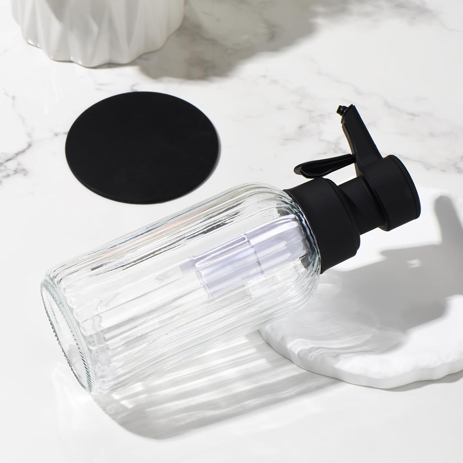 - 🔷Large Capacity, Easy Refillable: With a generous 500ml (16.9oz) capacity, this glass hand soap dispenser holds enough foaming soap to last for weeks, reducing the hassle of frequent refills. The wide-mouth glass bottle also make refilling easy, simply pour in foam soap or diluted liquid soap without spills or mess.