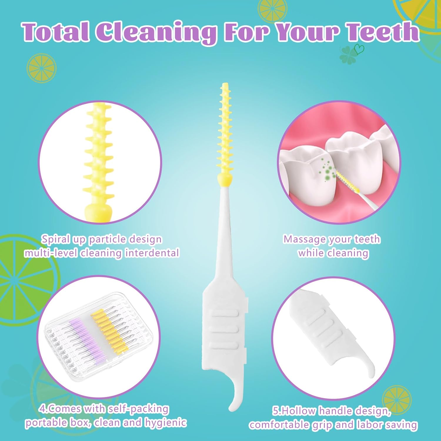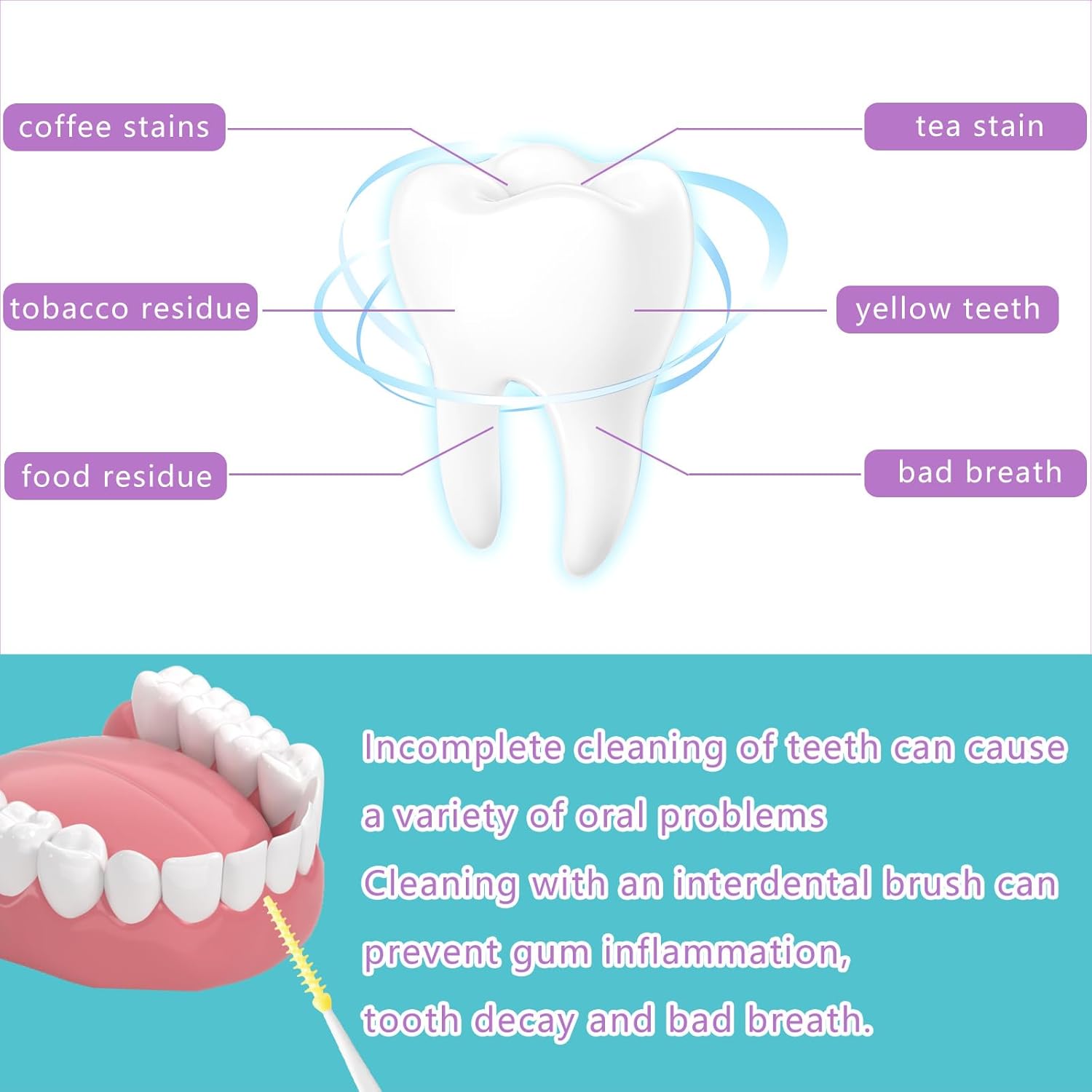 250 Pieces Interdental Brushes, Silicone Dental Floss Picks with Case Dental Brushes Dental Picks Tooth Floss Picks for Teeth Cleaning(Yellow, Purple)