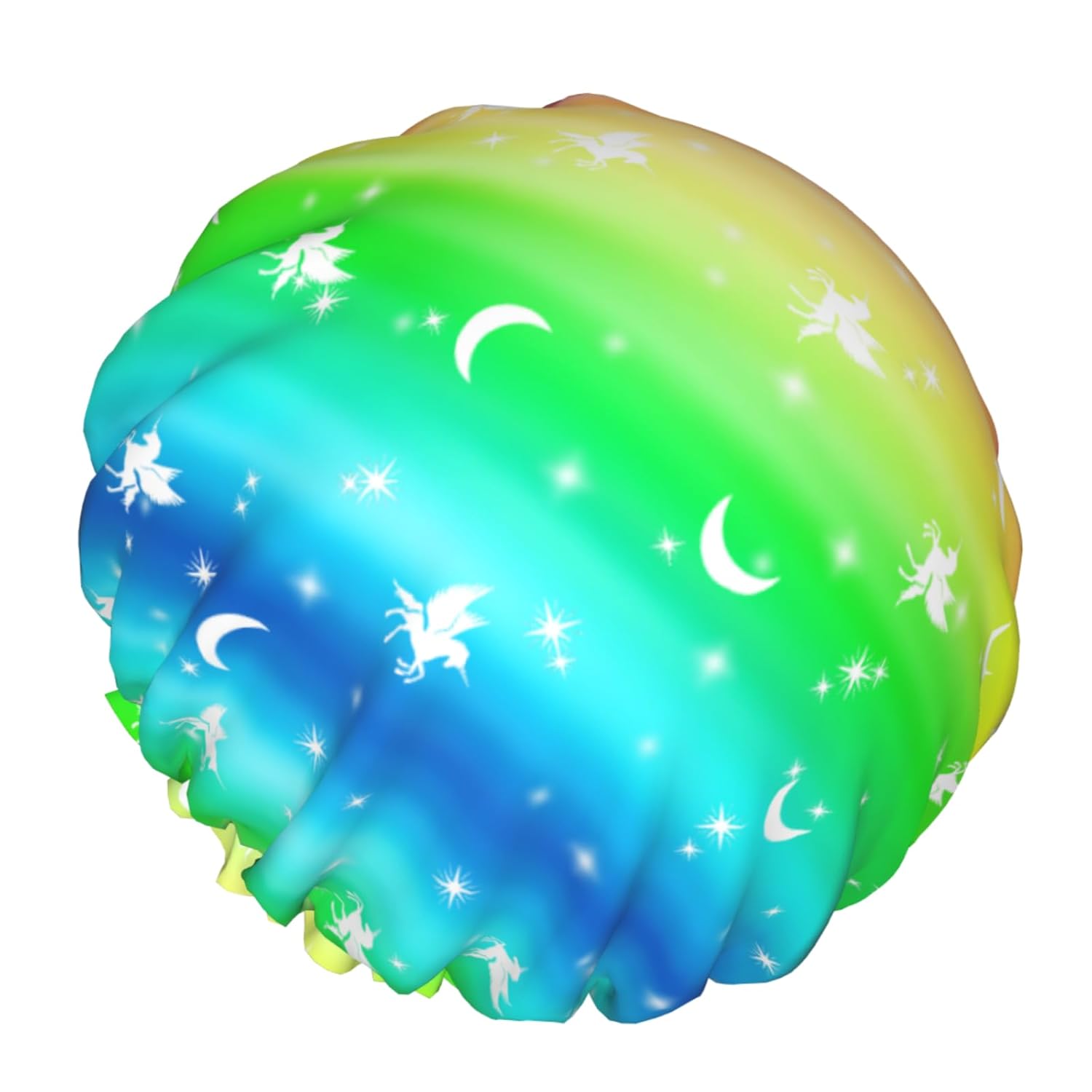 Rainbow Shower Caps Colorful Dual-Layer Waterproof Bath Hat Reusable Hair Caps Elastic Hair Hat for Shower Cooking Clean Makeup Travel