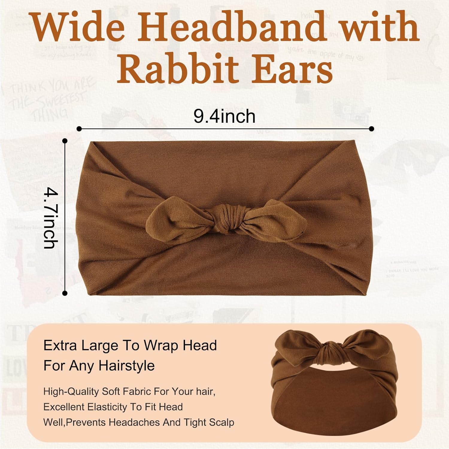 - 2. 【9.4" Wide Comfort Design】 The extra-wide 9.4 inch band provides full coverage, relieves pressure on ears, and tames flyaways. Made of super-stretchy, breathable fabric for all-day comfort without headaches.