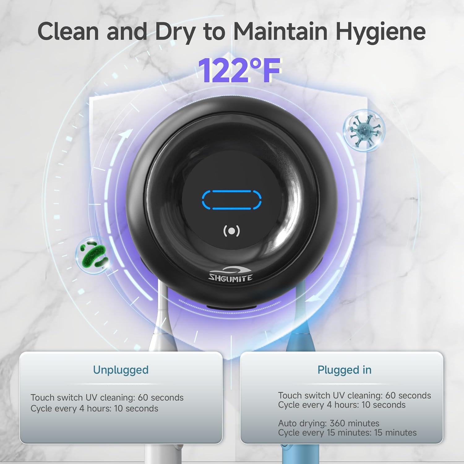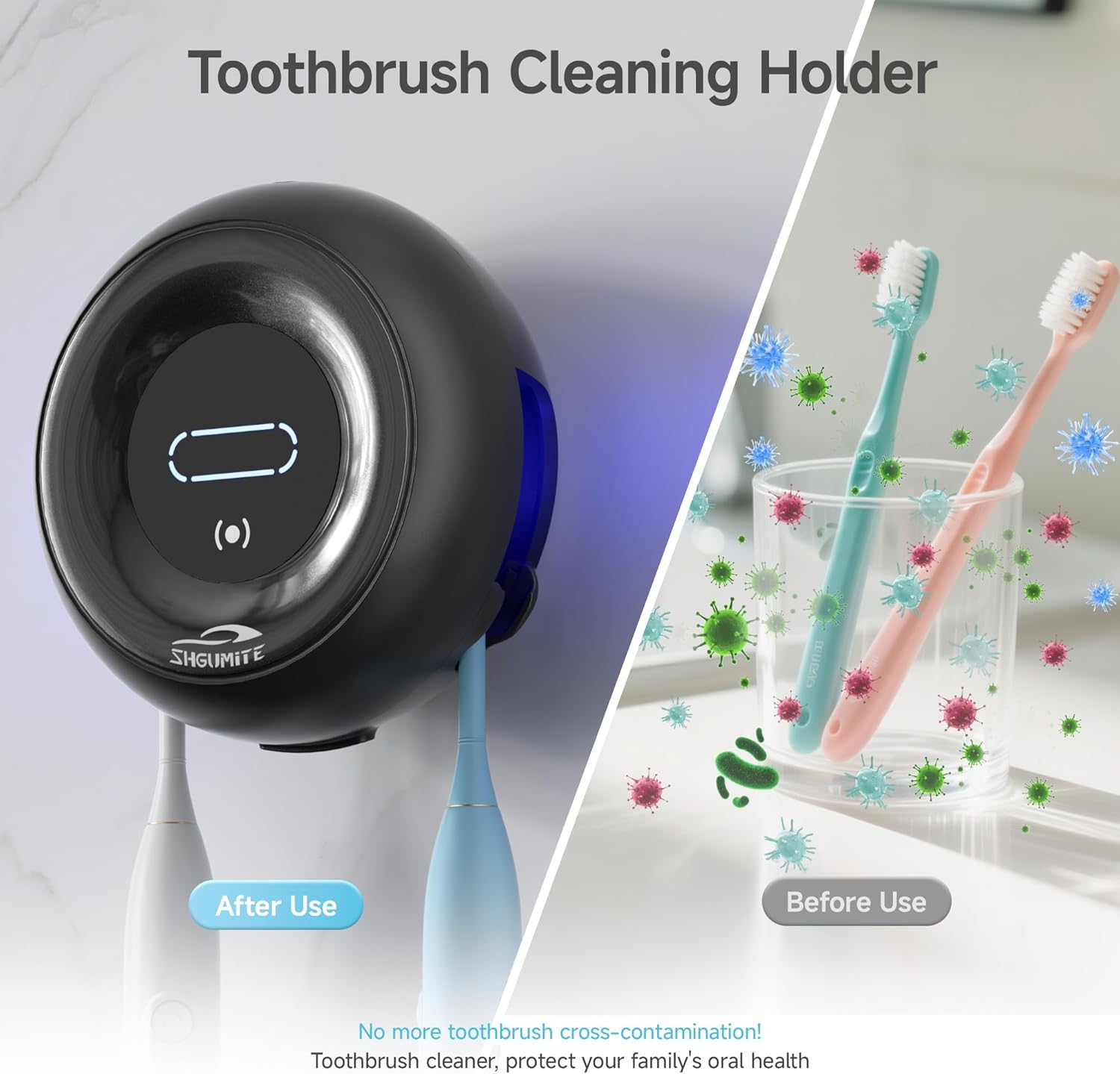 - Improved Oral Care: Press and hold the toothbrush holder for 3 seconds to enter a cycle of cleaning, killing 99.9% of dirt. Once connected to the power supply, it automatically switches to a constant temperature of 50ยฐC for drying, ensuring your toothbrush is completely dry and hygienic after each use