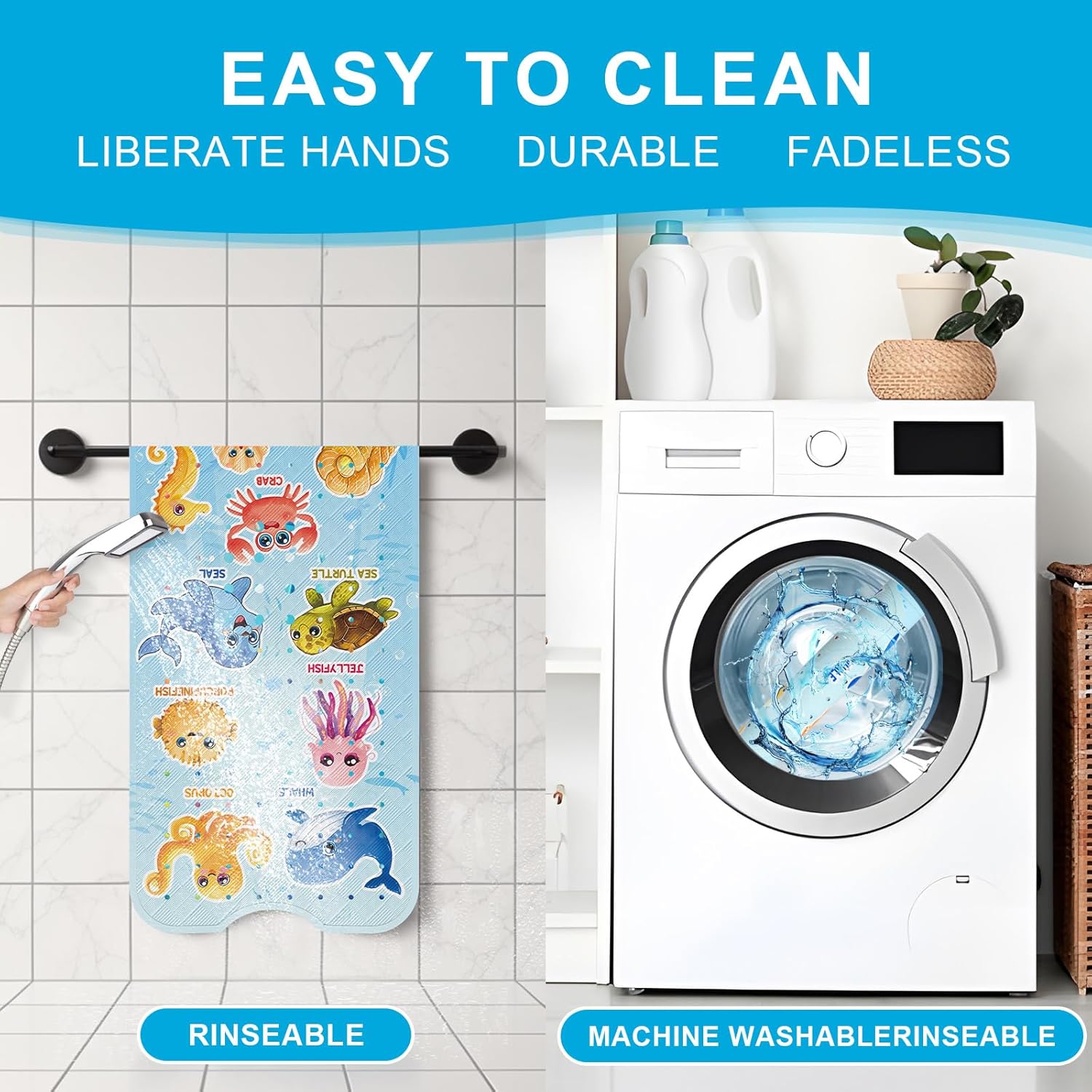 - ✅【Easy to Clean Baby Tub Mat】Our non slip bath tub mat for baby is designed for ultimate convenience—just simply rinse or brush it clean. Moreover, non slip baby bath mat machine washable without damaging the cartoon pattern. Enjoy long-lasting freshness and durability with minimal effort