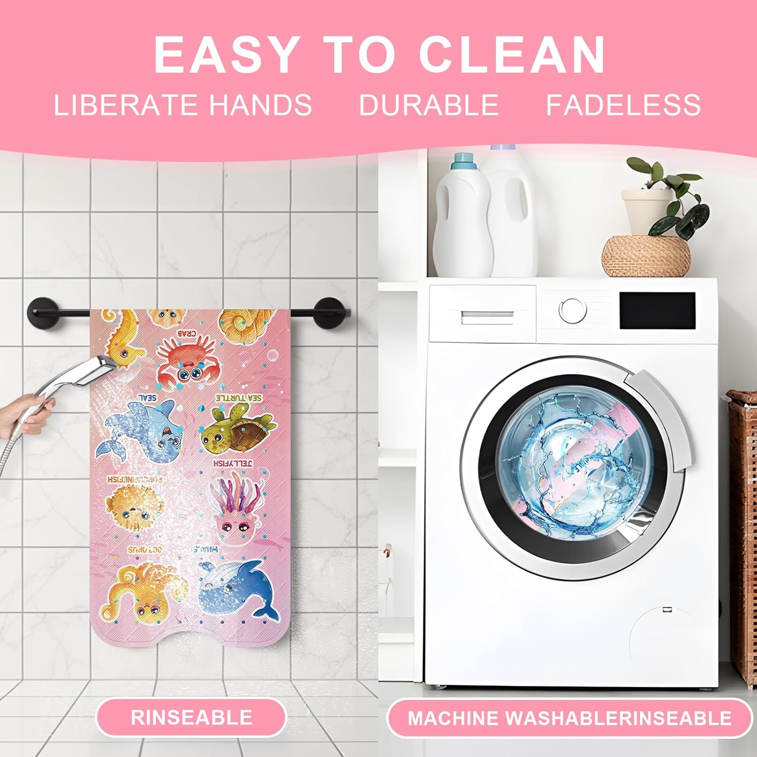- ✅【Easy to Clean Baby Tub Mat】Our non slip bath tub mat for baby is designed for ultimate convenience—just simply rinse or brush it clean. Moreover, non slip baby bath mat machine washable without damaging the cartoon pattern. Enjoy long-lasting freshness and durability with minimal effort