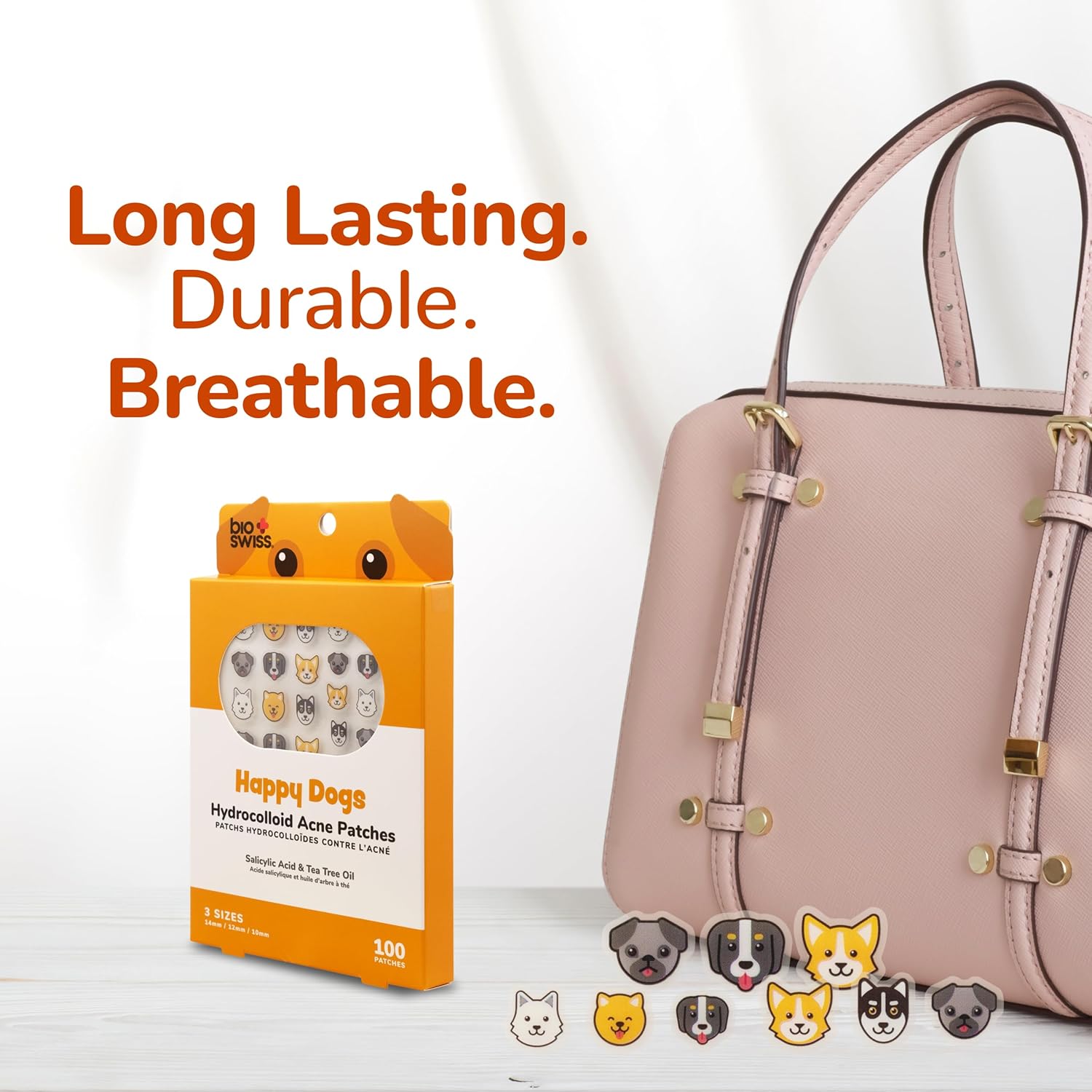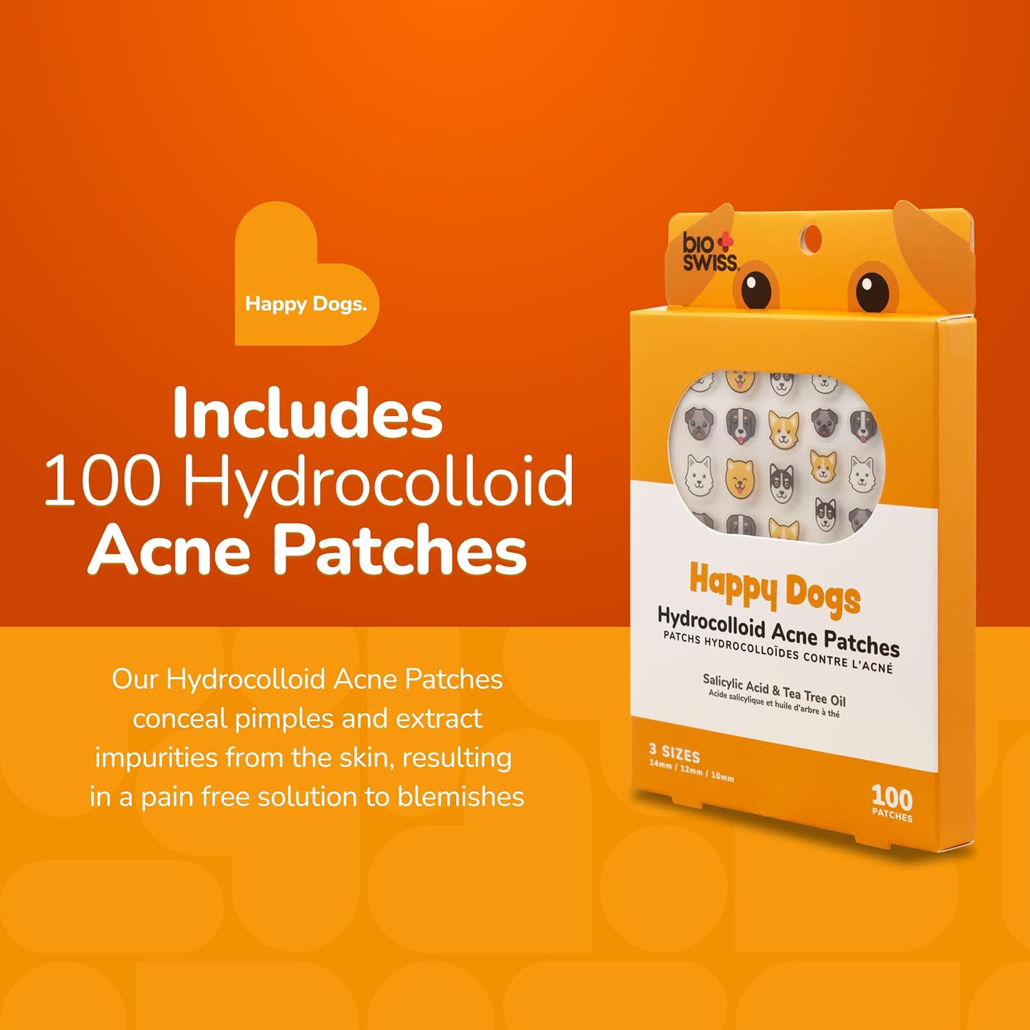- HAPPY DOGS ACNE PATCHES: Tackle zits and blemishes effectively and achieve clear and smooth skin with our Happy Dogs Acne Patches. Our patches for pimples come in 6 funny and cute assorted styles: