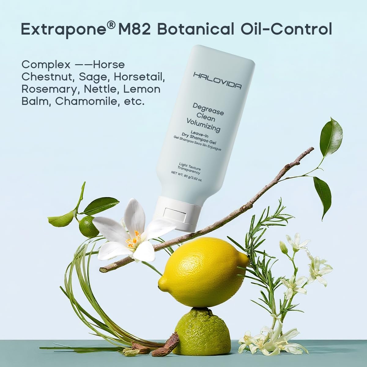 HALOVIDA Leave-in Dry Shampoo Gel, Instant Oil Absorption & Volume, Light Texture Transparency, Non-Aerosol, Safe & Clean with Natural Ingredients, 2.82 oz
