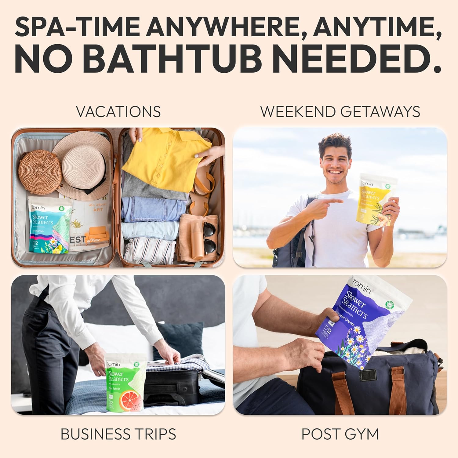 FOMIN Aromatherapy Shower Steamers - 12 Count - Spiced Orange Bath Bombs with Essential Oils for Stress Relief & Relaxation - Self Care, Spa Gifts for Women and Men - Shower Aroma for Body Wellness