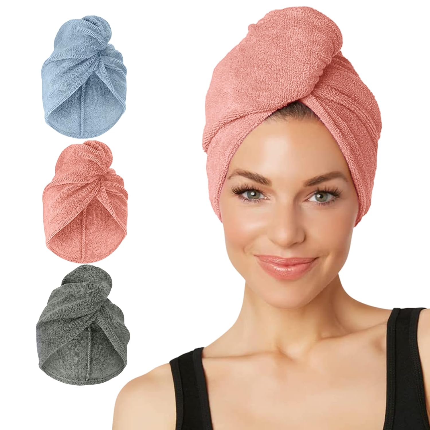 Turbie Twist 3-Pack Microfiber Hair Towel for Beauty, Travel, Gifting - Hair Wrap Turban for Straight, Wavy & Curly Hair - Premium Personal Care - Gray, Blue & Pink
