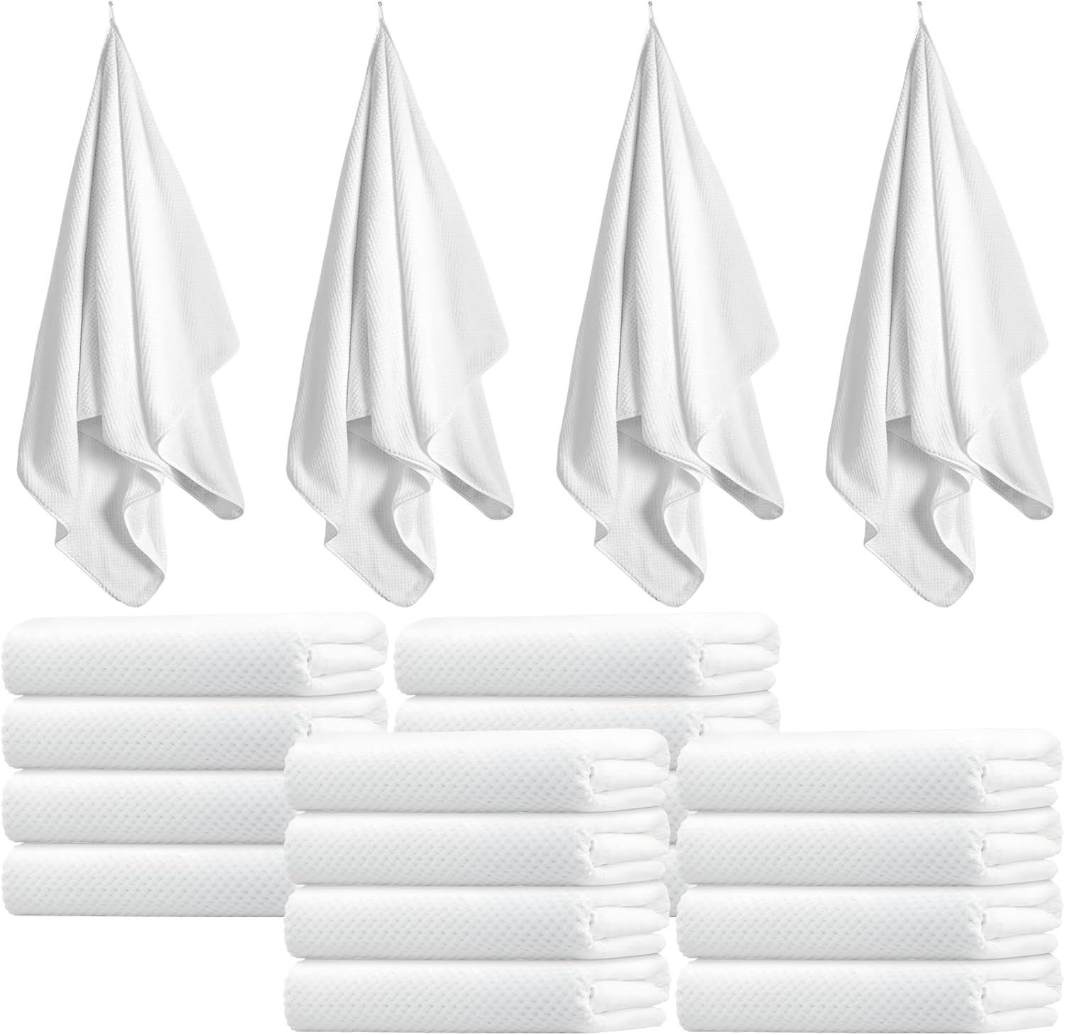 16 Pack Microfiber Bath Towels Bulk 27'' x 60'' Oversized Size Bath Towel Highly Absorbent Extra Large Soft Drying for Shower Beach Salon Winter Sport Spa Gym (Lattice,White)