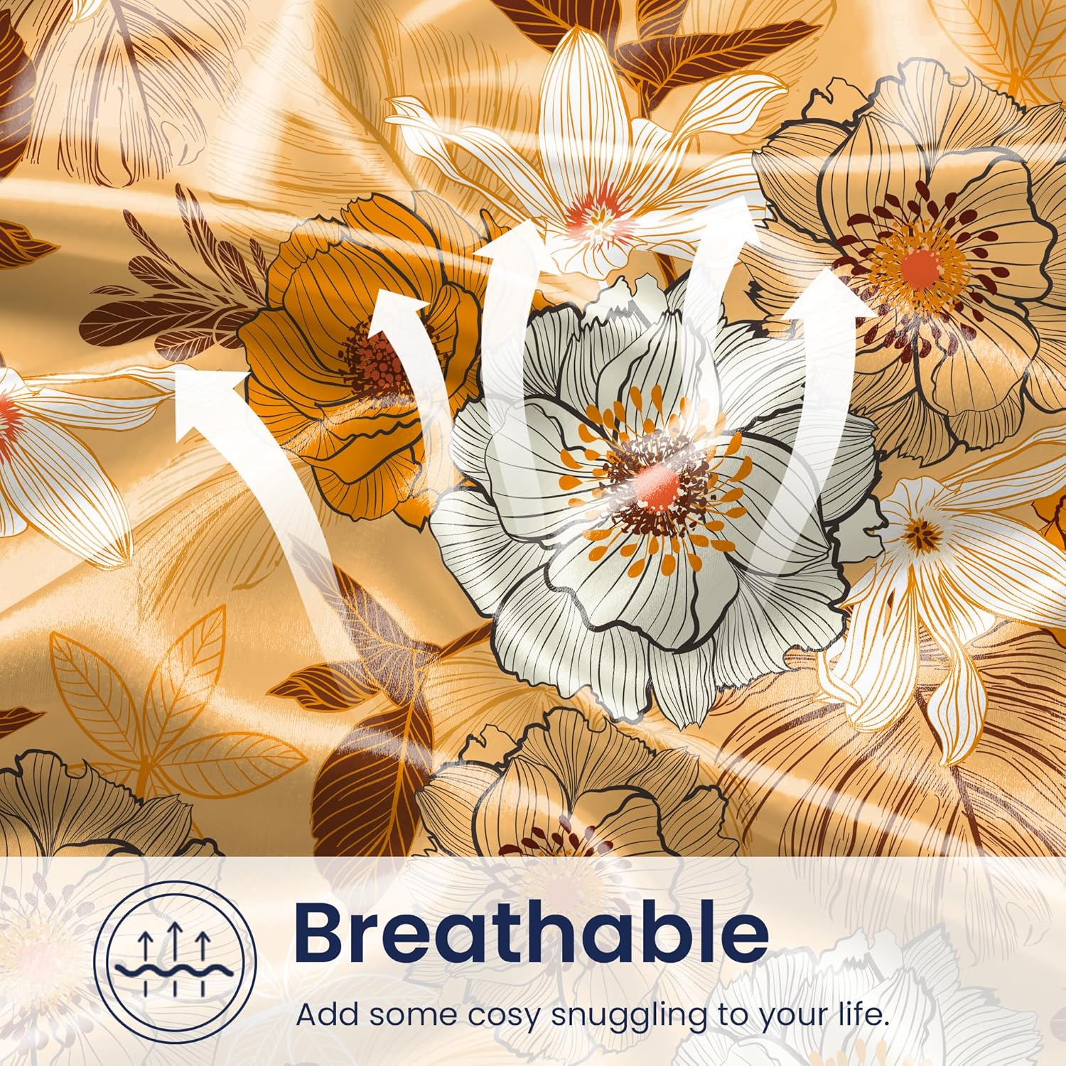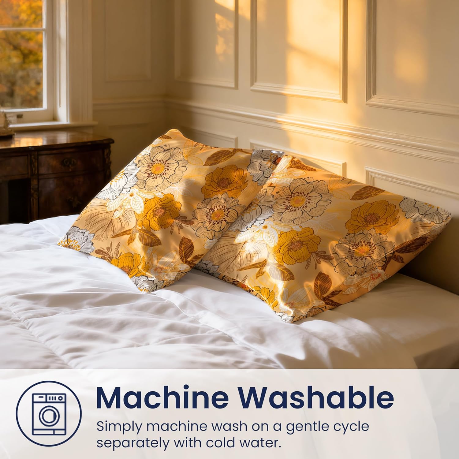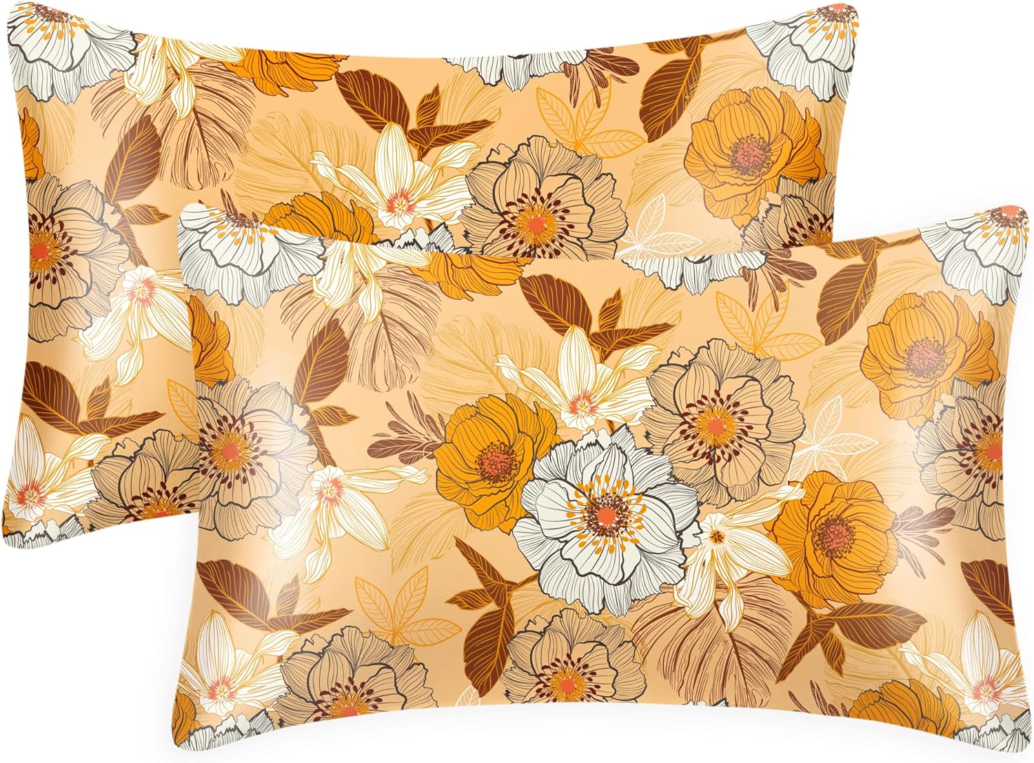 EXQ Home Satin Pillowcase for Hair and Skin Queen - Printed Autumn Flowers Silk Pillow Cases 2 Pack 20x30 inches - Satin Pillow Cases Set of 2 with Envelope Closure, Gifts for Women Men