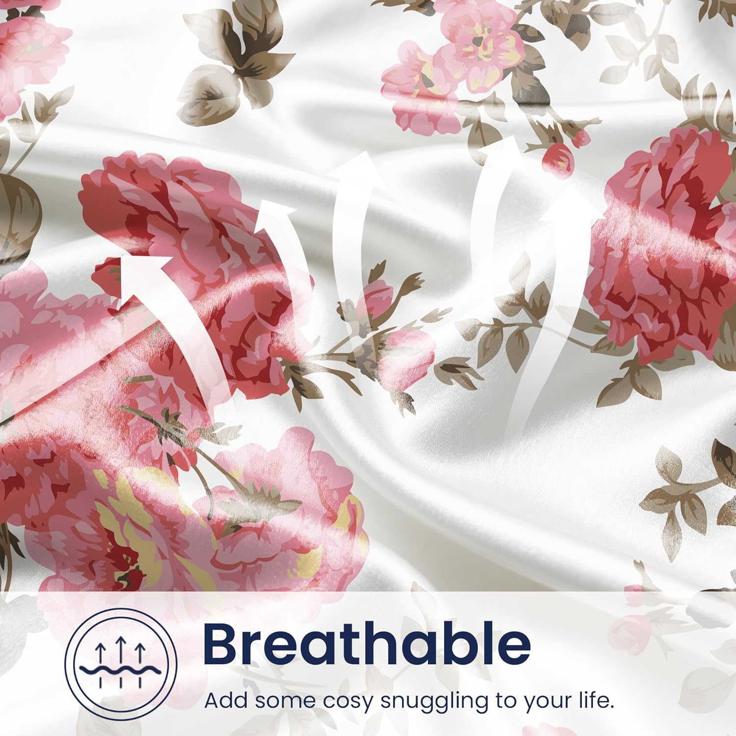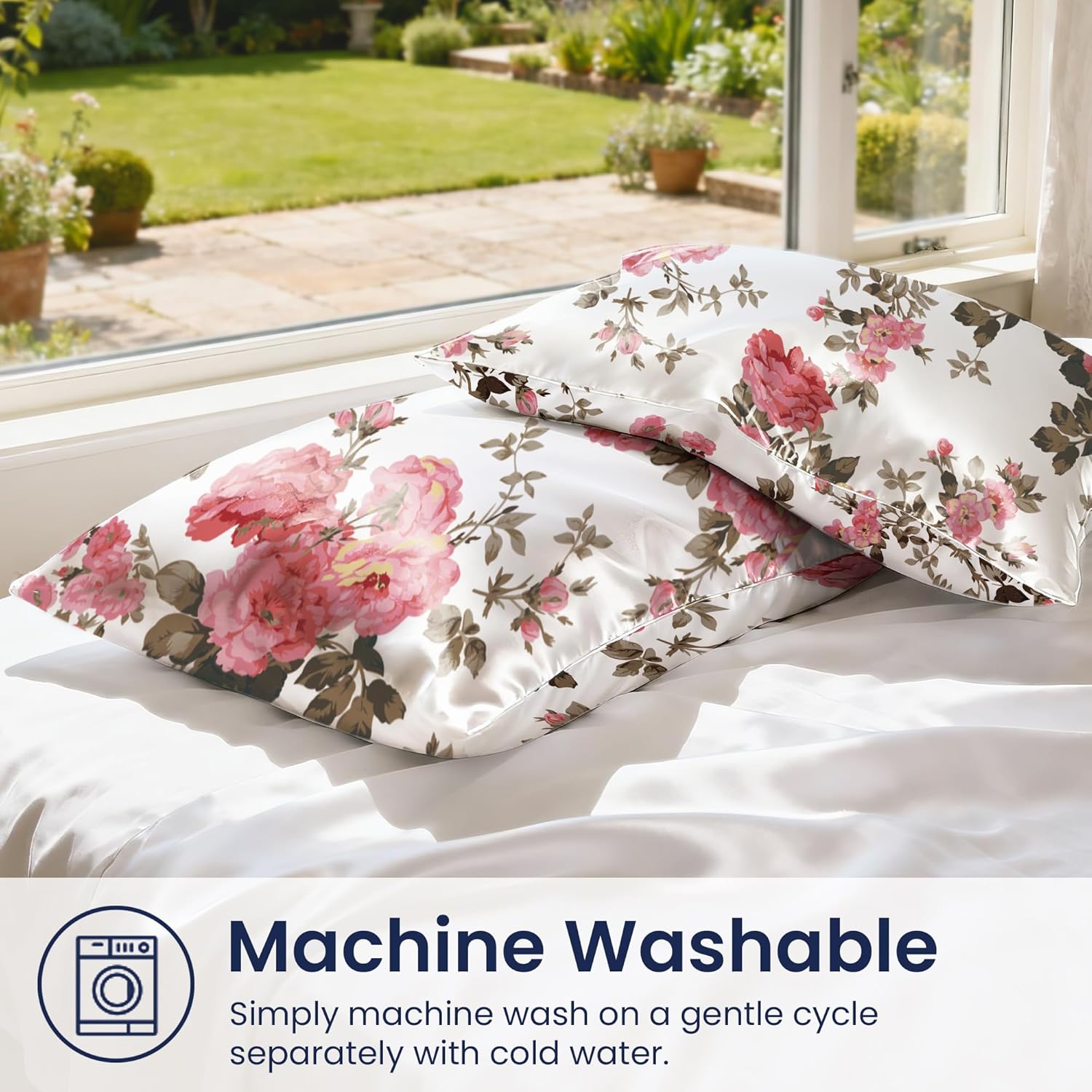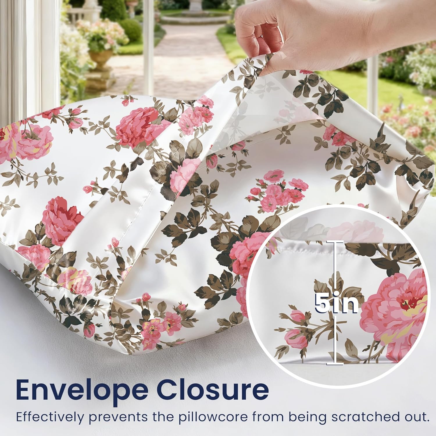 EXQ Home Satin Pillowcase for Hair and Skin Queen - Printed Spring Flowers Silk Pillow Cases 2 Pack 20x30 inches - Satin Pillow Cases Set of 2 with Envelope Closure, Gifts for Women Men