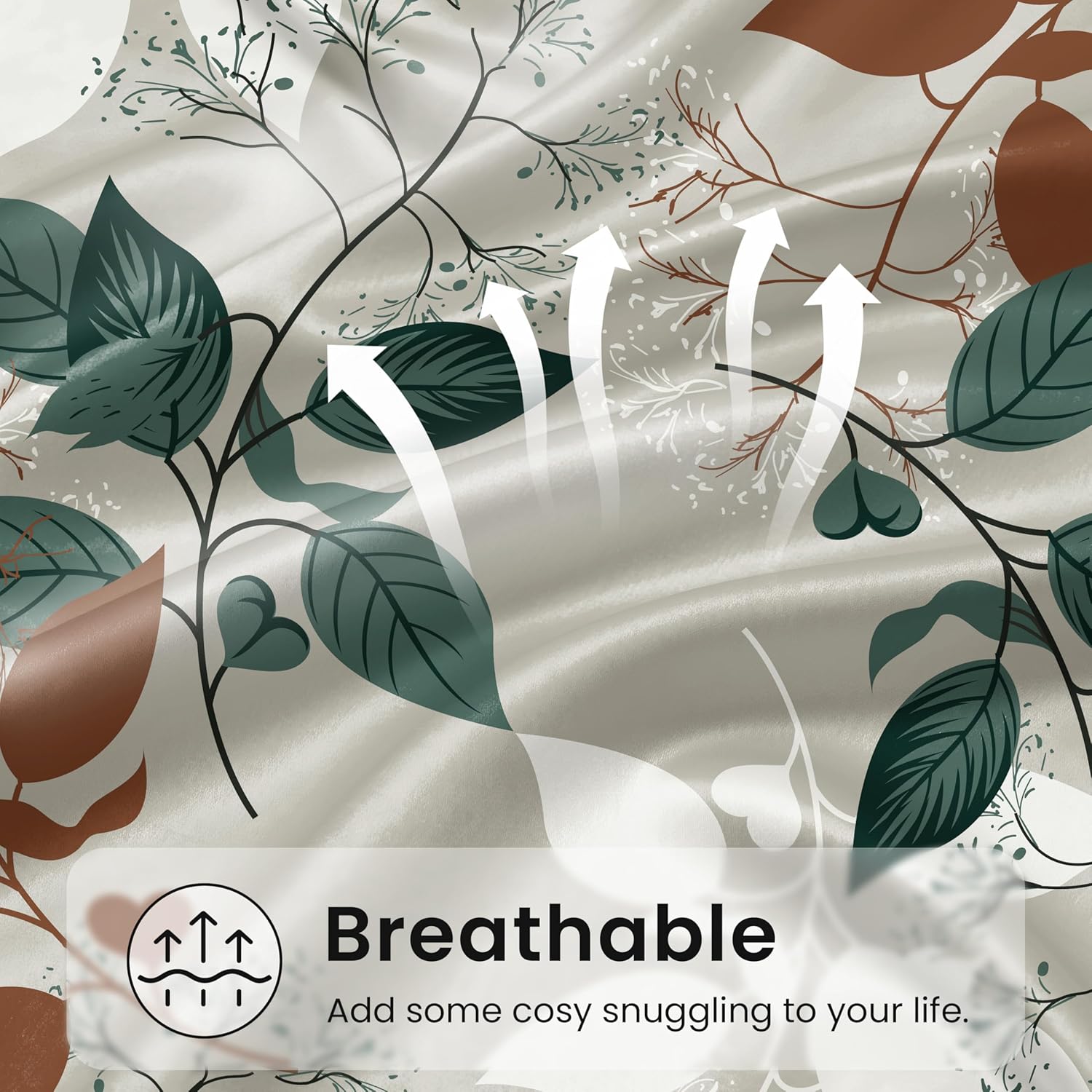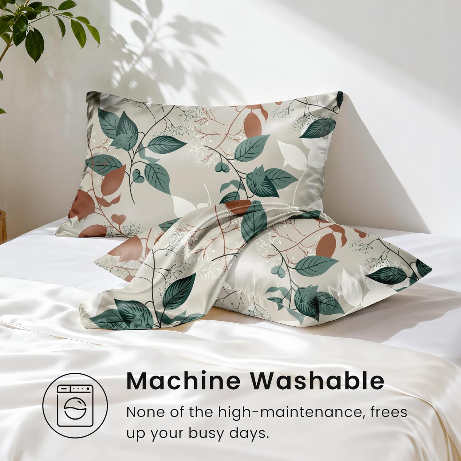 EXQ Home Satin Pillowcase for Hair and Skin Queen - Printed Green Leaves Silk Pillow Cases 2 Pack 20x30 inches - Satin Pillow Cases Set of 2 with Envelope Closure, Gifts for Women Men
