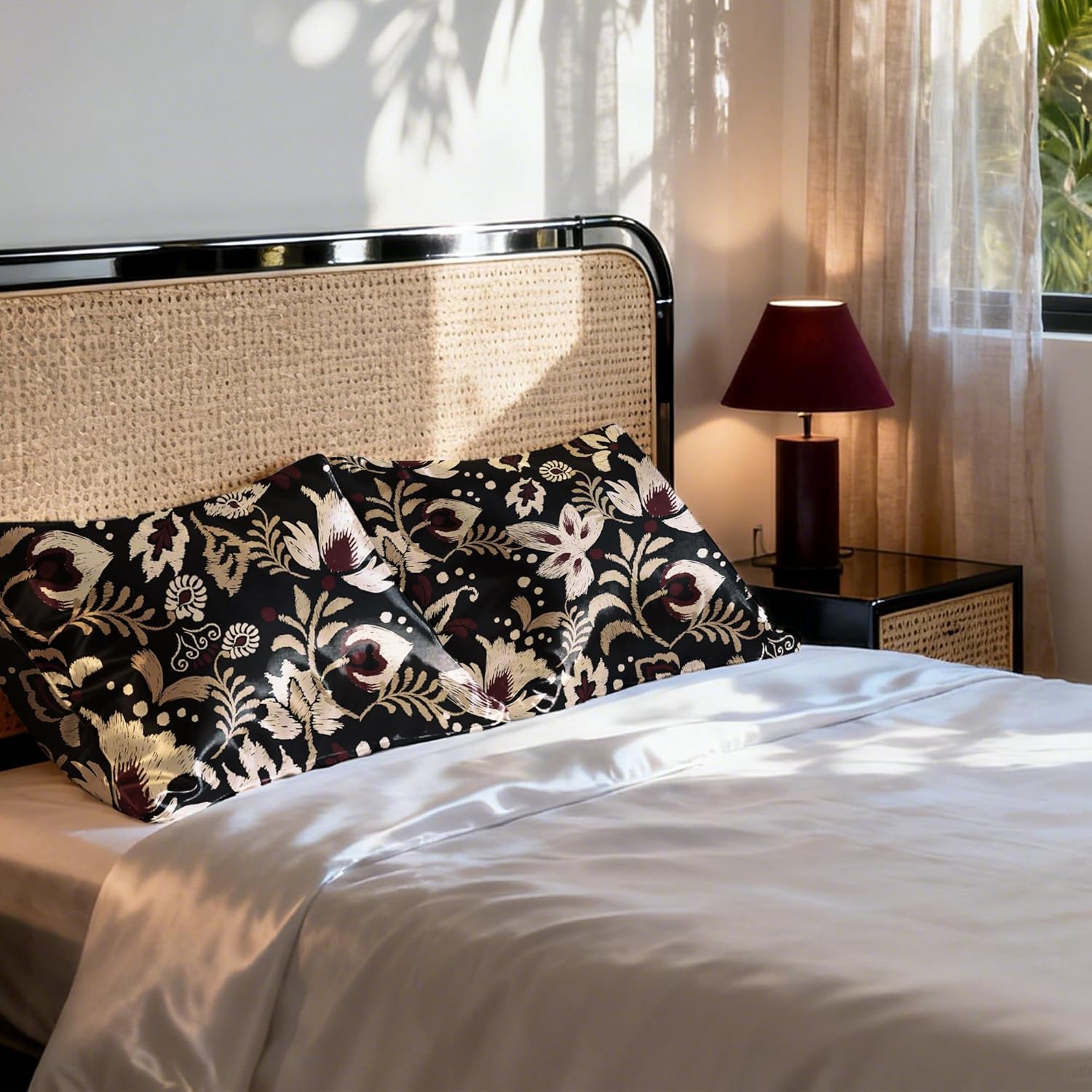 EXQ Home Satin Pillowcase for Hair and Skin Queen - Printed Red Flowers Silk Pillow Cases 2 Pack 20x30 inches - Satin Pillow Cases Set of 2 with Envelope Closure, Gifts for Women Men