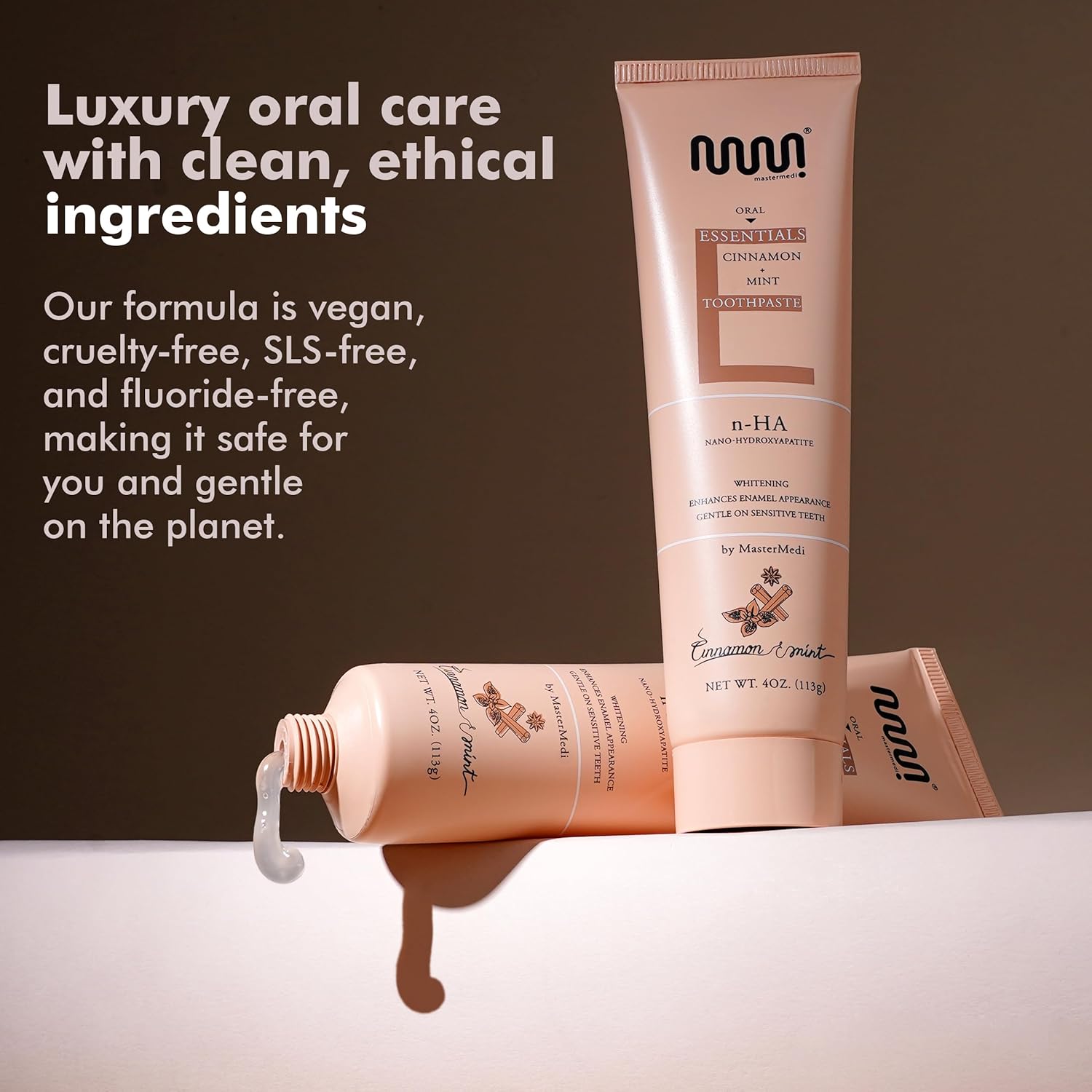 MasterMedi Nano Hydroxyapatite Toothpaste (Inspired by 10% nHA Formulas), Fluoride-Free, Whitening & Sensitivity Relief, Enamel Repair Support, SLS-Free, Xylitol, Mint & Cinnamon 4 Oz (Pack of 1)