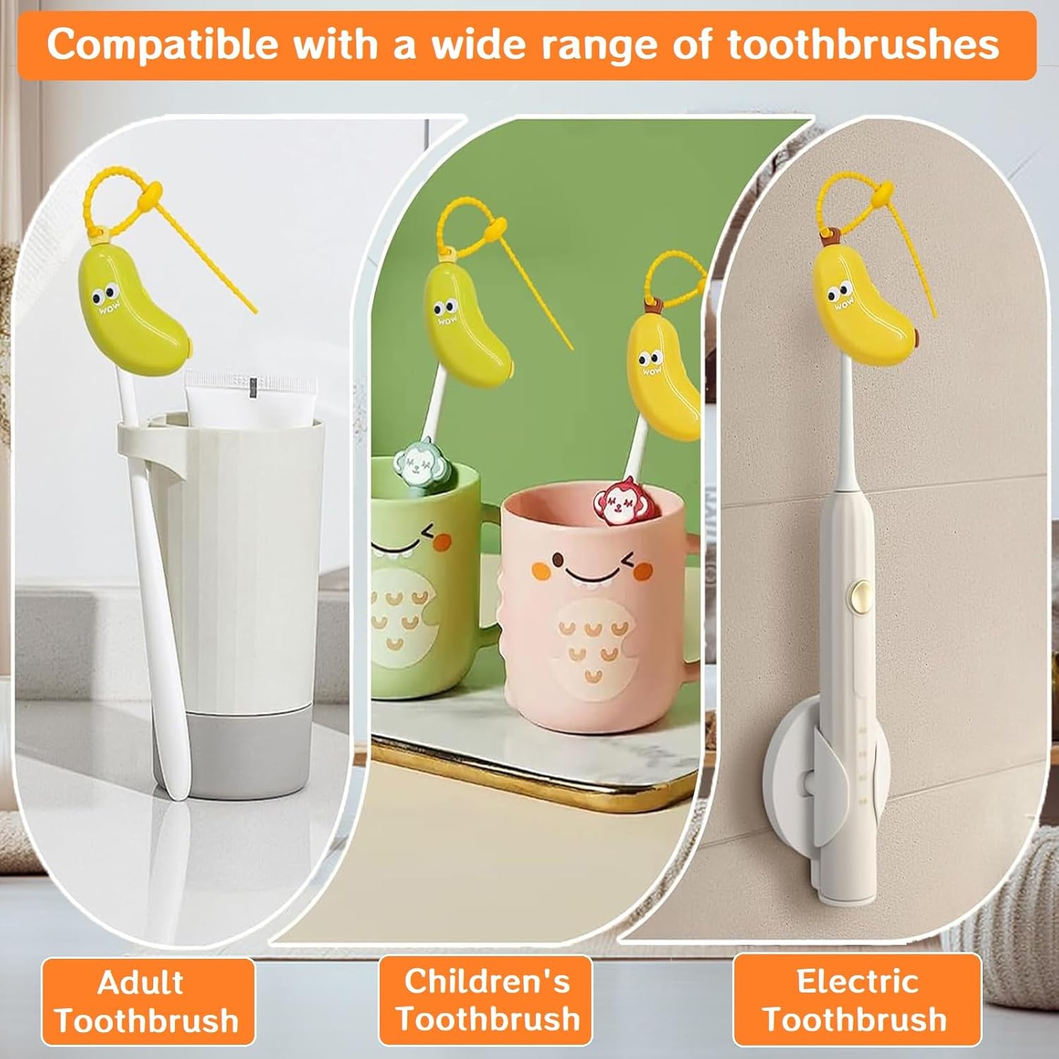 - 【Cute Banana with Smiley Face Design】:This cute banana toothbrush holder is a total hit with kids! Its happy face makes brushing fun, turning a daily routine into something they'll actually look forward to. Plus, it's so charming you could use it as a fun decoration anywhere.